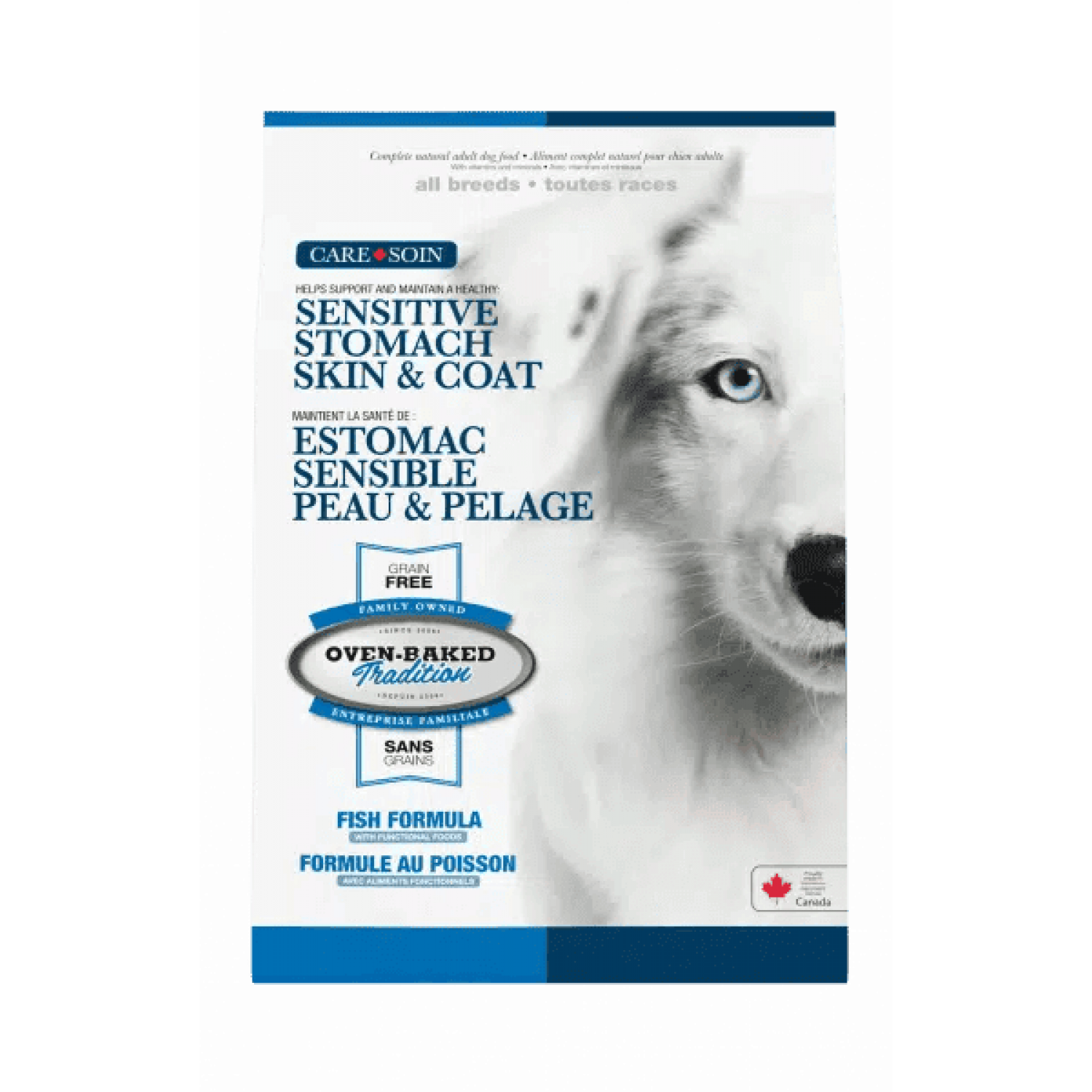 Oven-Baked Tradition Skin & Stomach - спеціально розроблена беззернова формула для собак, яка підтримує здорове травлення, імунітет та блискучу шерсть. Завдяки поєднанню функціональних інгредієнтів, вітамінів і мінералів, вона допомагає зменшити запалення кишечника (завдяки цеоліту), підтримує мікрофлору й імунну систему (завдяки постбіотикам), а також забезпечує сяючу шерсть і здорову шкіру завдяки свіжому оселедцю, лососю, омега-3, DHA та вітаміну С.