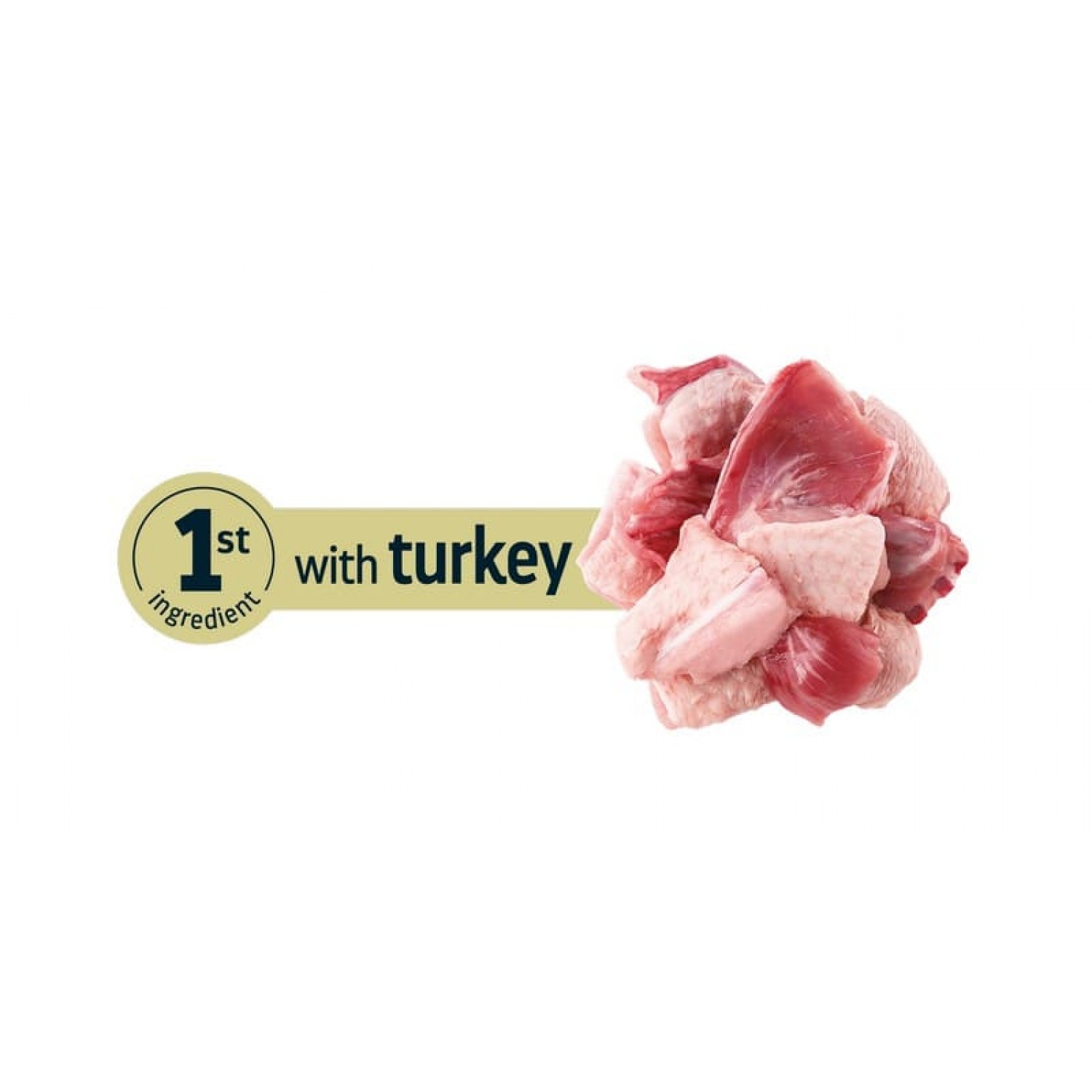 Склад: індичка (15%), цільнозернова кукурудза, кукурудзяний білок, дегідровані білки свинини, дегідровані білки домашньої птиці, цільний зерновий ячмінь (8%), цільнозернова пшениця (5%), порошок целюлози, гідролізовані тваринні білки (домашня птиця, свинина, риба), буряковий жом (2%), тваринний жир, пшенична крупка, мінерали, риб'ячий жир, інулін цикорію (0,6%), плазматичні білки свинини (природне джерело імуноглобулінів) (0,4%).  З антиоксидантами.