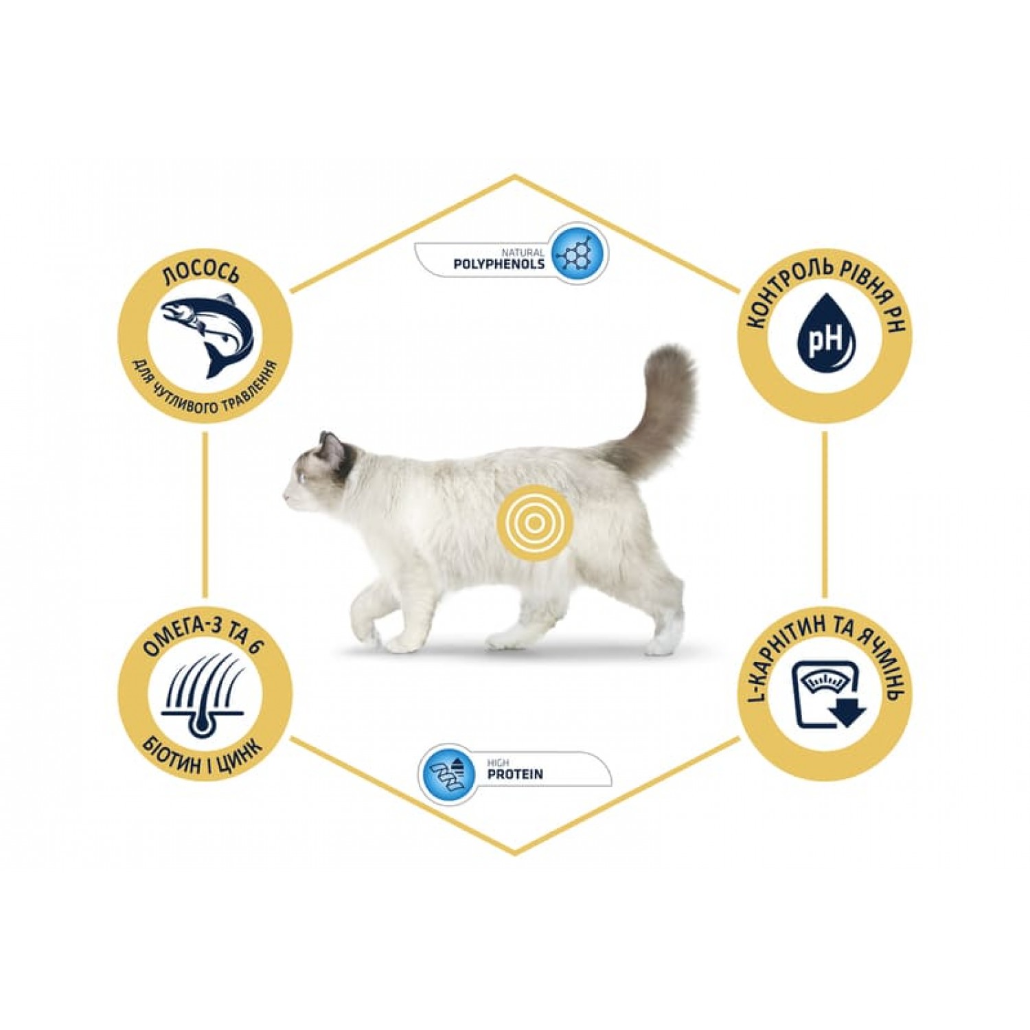 - Лосось як основне джерело білка - забезпечує високу засвоюваність і є ідеальним для котів з чутливими шлунками.