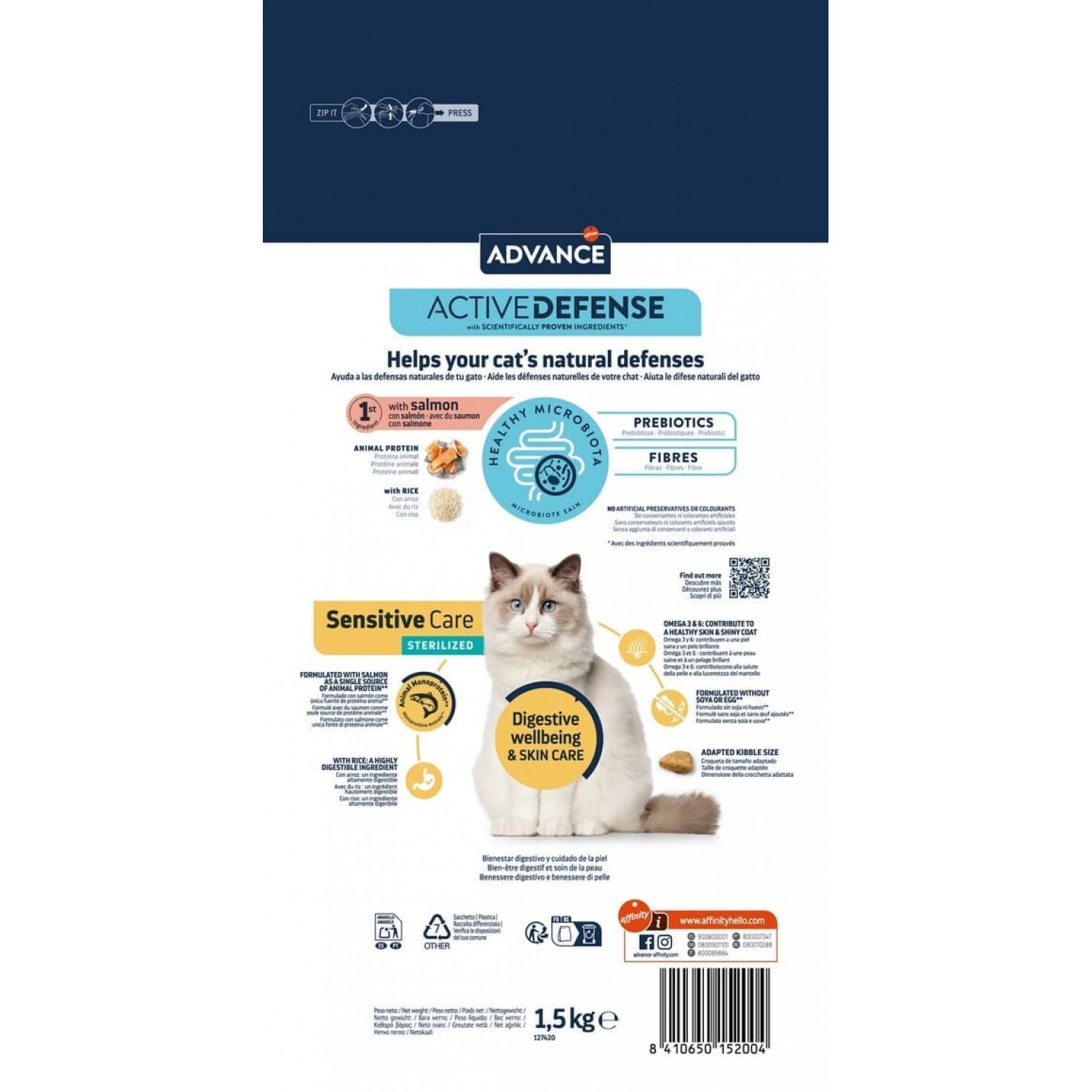 Особлива формула Active Defense у кормах ADVANCE - це науково розроблена система підтримки природного імунітету кота. Поєднання пробіотиків, пребіотиків, натуральної клітковини та імуноглобулінів сприяє здоровому травленню, покращує баланс кишкової мікрофлори та підсилює захисні функції організму. Це дозволяє вашому улюбленцю краще засвоювати поживні речовини та ефективно протистояти зовнішнім чинникам, забезпечуючи йому активне, здорове і довге життя щодня.