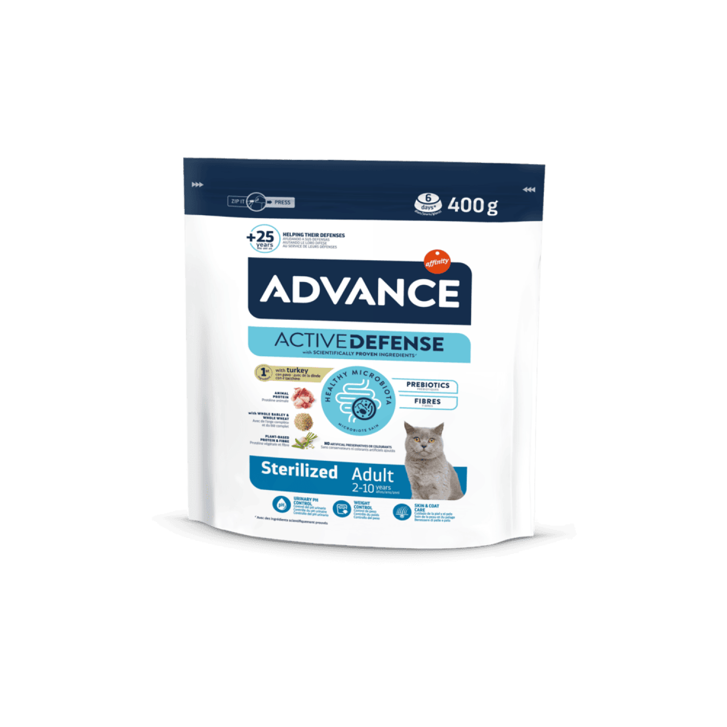 Advance Cat Sterilized - це повнораціонний збалансований корм, спеціально розроблений для стерилізованих котів. Його формула враховує змінені харчові потреби тварин після стерилізації, допомагаючи підтримувати здорову вагу, належний обмін речовин і загальний стан здоров’я. Він не лише допомагає контролювати вагу, а й сприяє підтримці здоров’я сечової системи, підвищує загальне самопочуття та забезпечує комфортне життя стерилізованому коту.