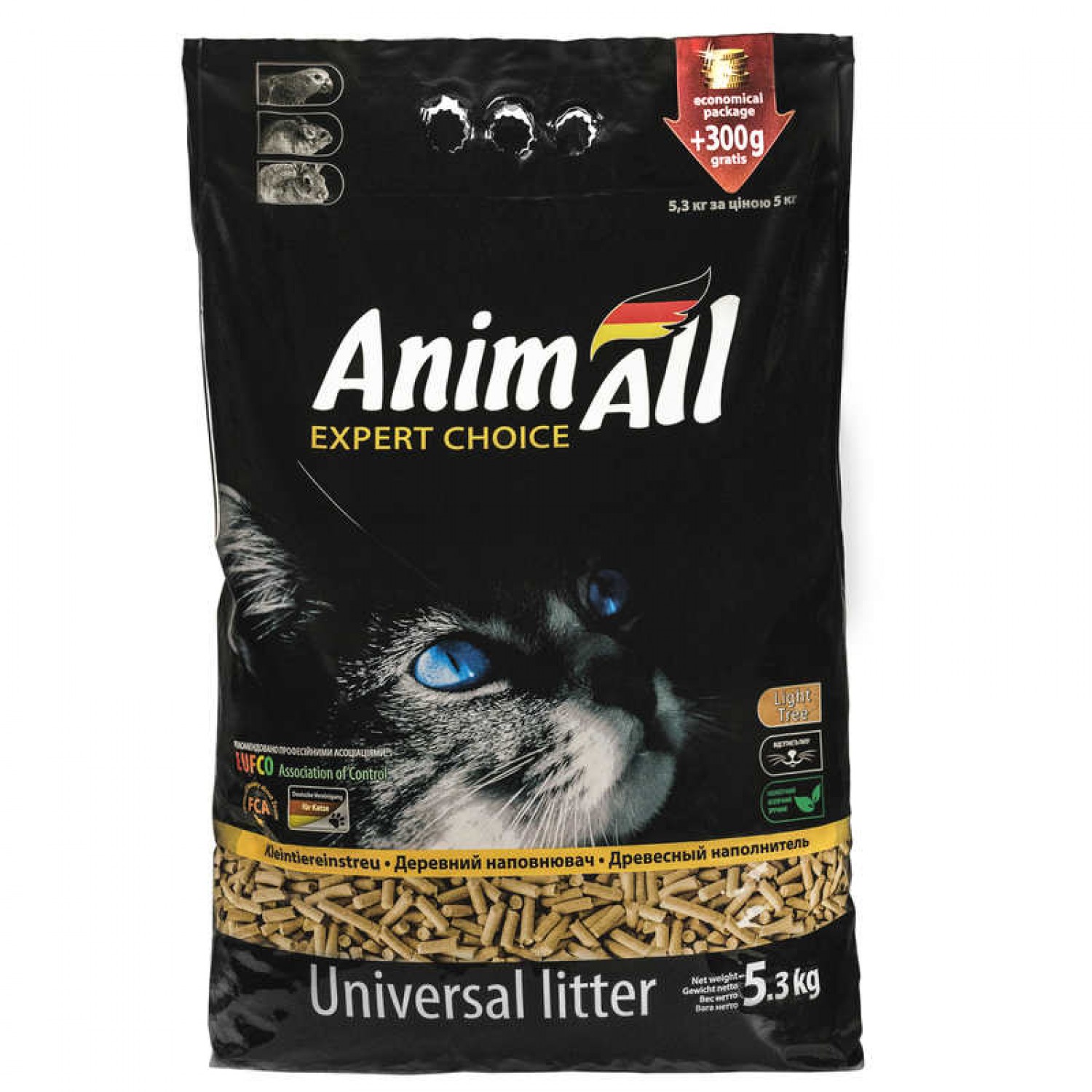 AnimAll деревний наповнювач для котів без аромату 5 кг + 300 г у подарунок