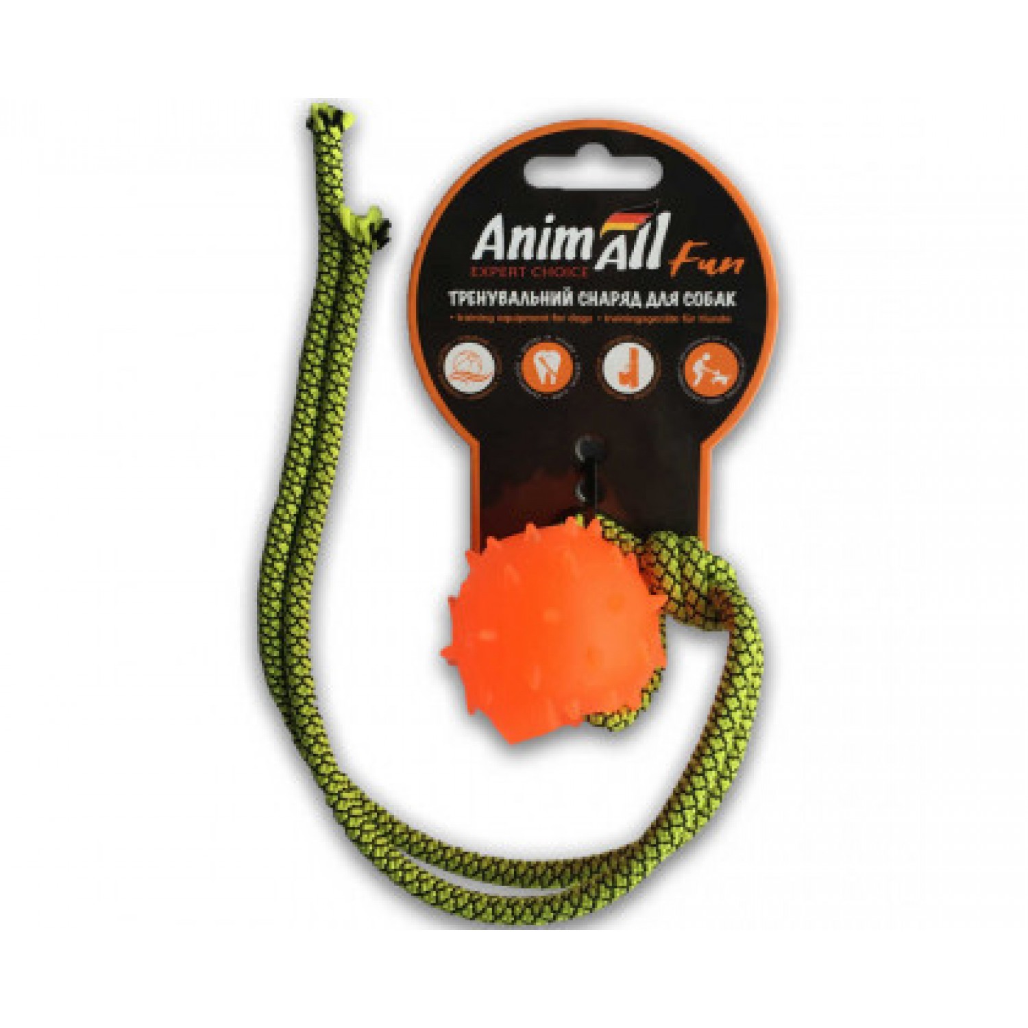 Цікава куля з дрібними шипами від компанії AnimAll, виготовлена на 100% з натурального каучуку, що має велику міцність і приємний аромат. У користуванні іграшка ще і дуже зручна, адже має практичний канатик. Шипи виробу гарантують очищення зубів собаці і прекрасно втамовують бажання тварини до гризіння предметів.