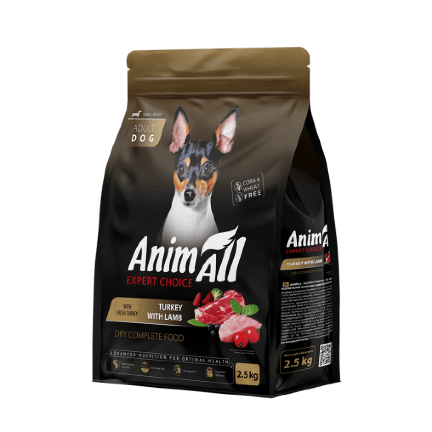 AnimAll сухий корм для дорослих собак малих порід зі свіжою індичкою та ягням.
