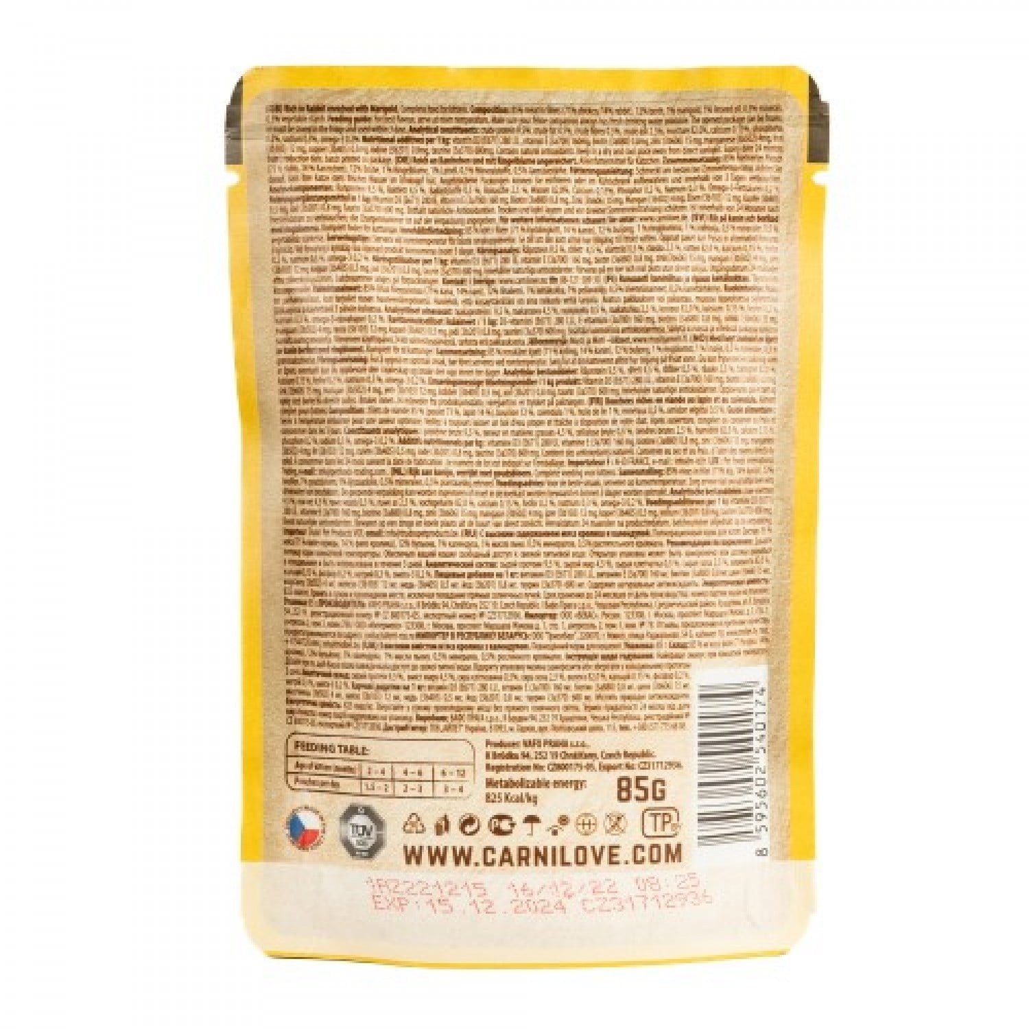 Carnilove rich in Rabbit enriched with Marigold (філе дичини в соусі) - повноцінний вологий корм класу холістик для кошенят. Цей раціон можна використовувати, як основну страву або як доповнення до сухого корму - для надання йому апетитності.