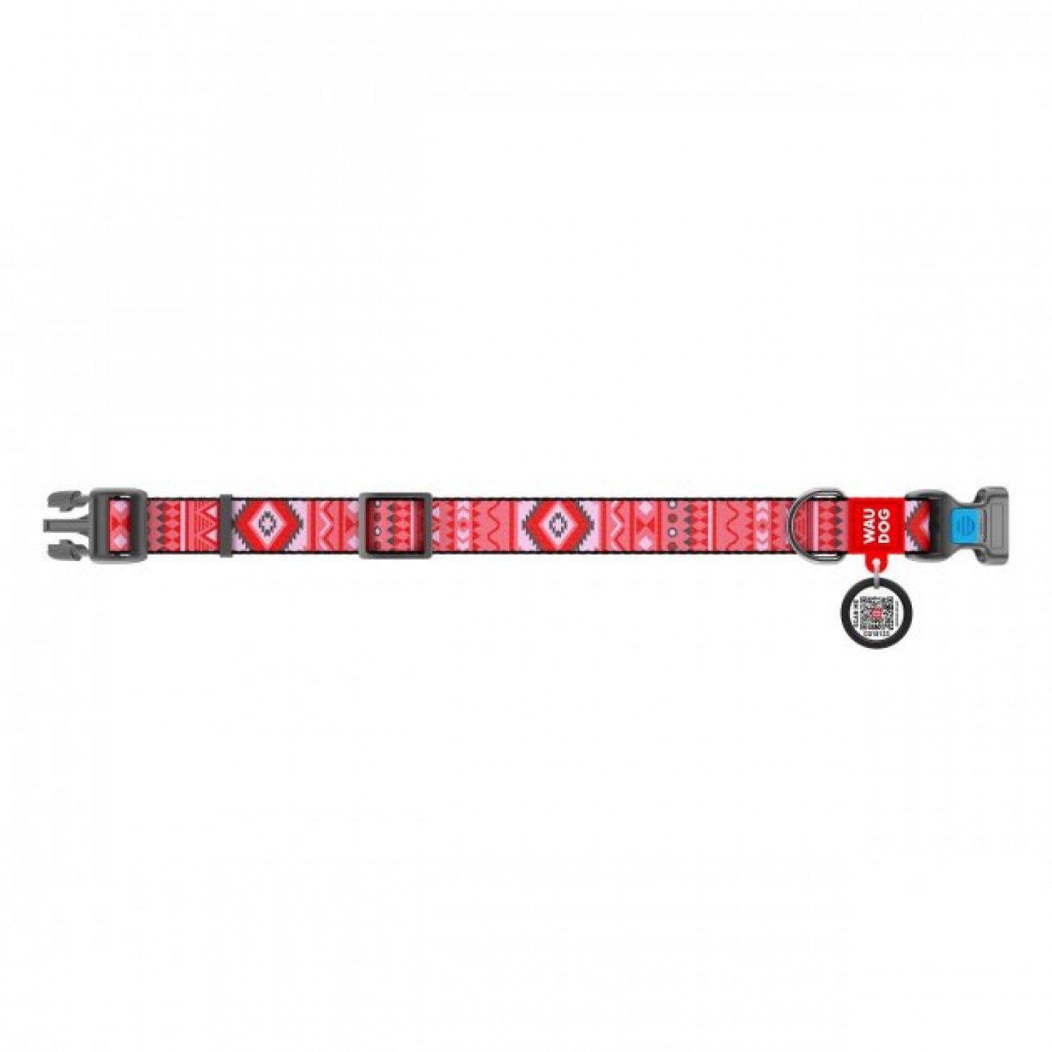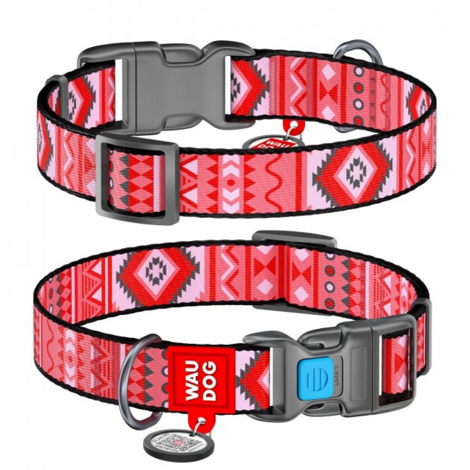 Collar WAUDOG Nylon нейлоновий нашийник "Етно червоний" з QR паспортом для собак.