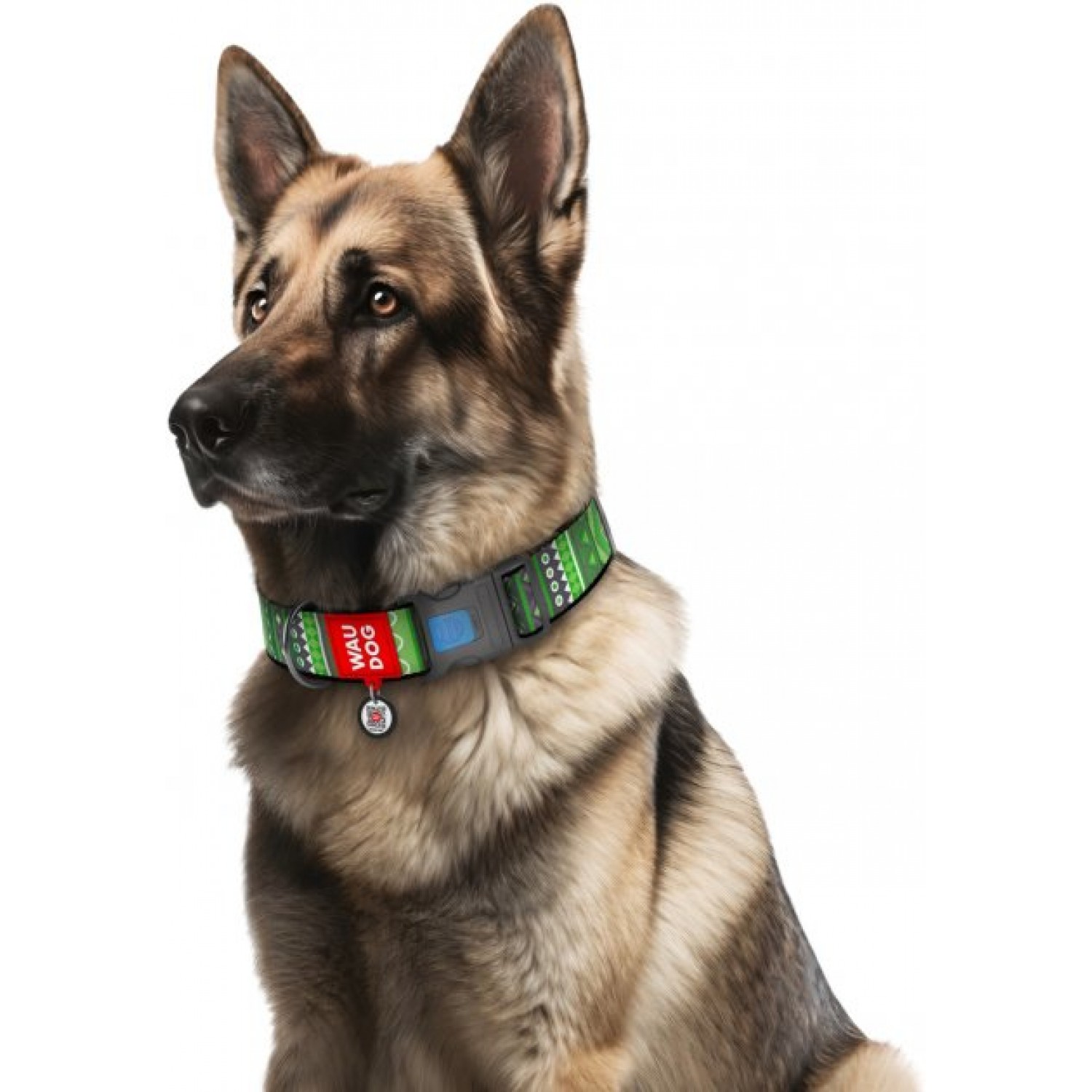Collar WAUDOG Nylon нейлоновий нашийник "Етно зелений" з QR паспортом для собак.