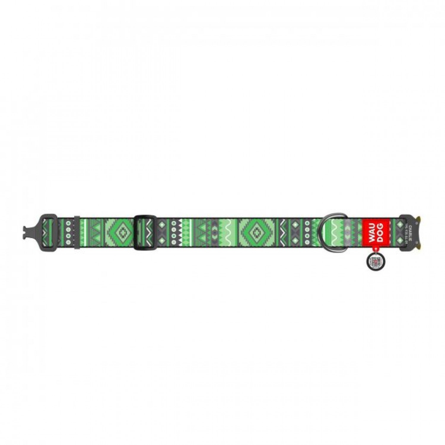 Collar WAUDOG Nylon нейлоновий нашийник "Етно зелений" з QR паспортом та металевою фурнітурою для собак.