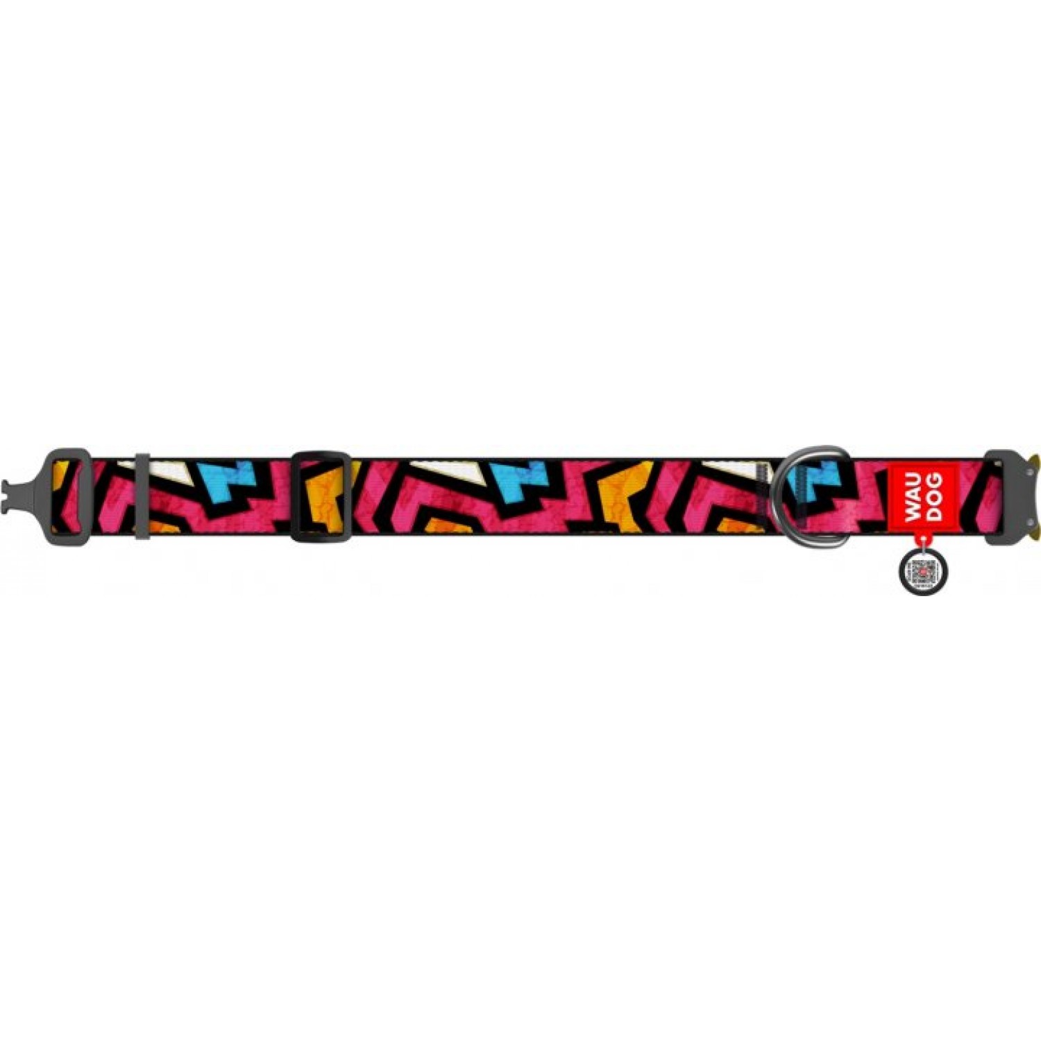 Collar WAUDOG Nylon нейлоновий нашийник "Графіті" з QR паспортом та металевою фурнітурою для собак.