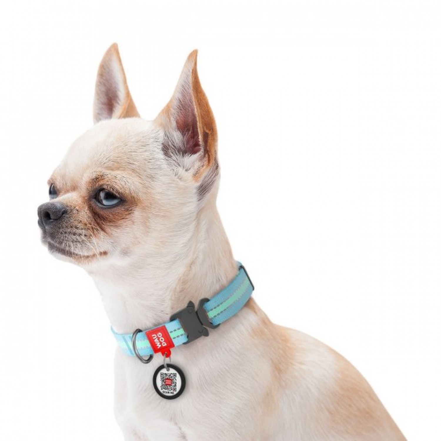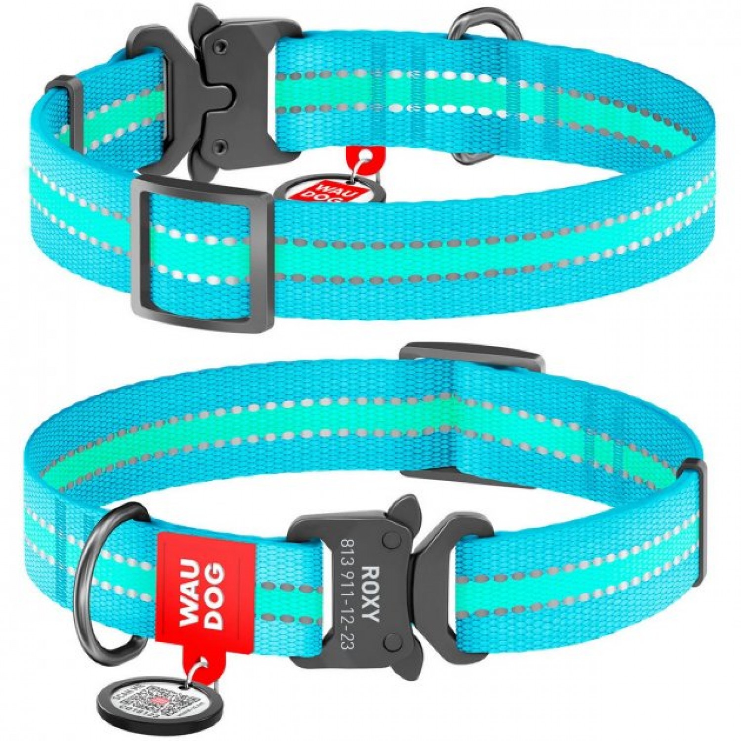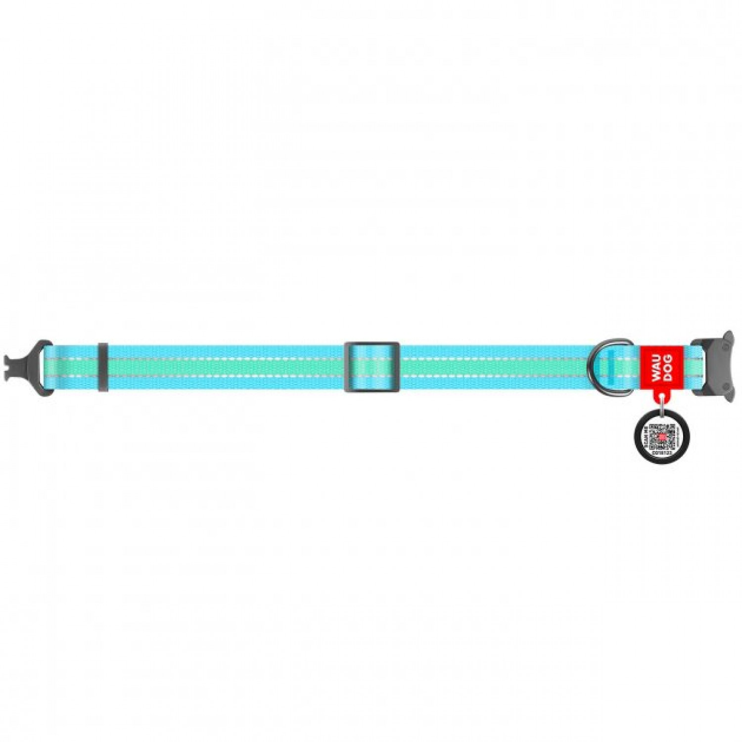 Collar WAUDOG Nylon світловідбивний нашийник, що світиться з QR паспортом та металевою фурнітурою для собак (блакитний).