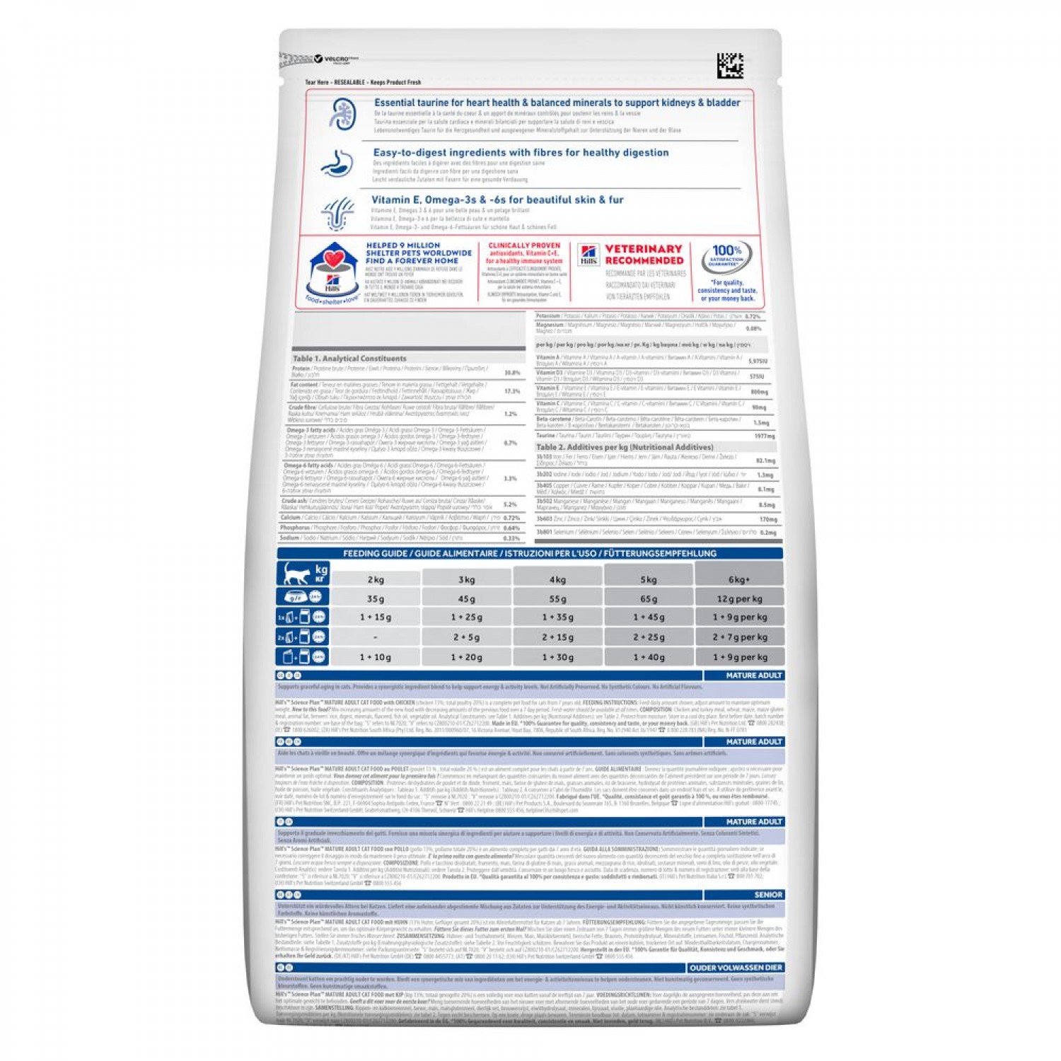 Hill's Science Plan Mature Adult 7+ враховує ці особливості й забезпечує ефективне поєднання інгредієнтів для підтримання рівня енергії та активності відповідно до віку кота. Харчування для котів Hill’s виготовлено з інгредієнтів найвищої якості. Ці інгредієнти мають відповідати суворим вимогам Hill’s Pet Nutrition щодо чистоти та вмісту поживних речовин, які перевершують галузеві стандарти. Рекомендовано ветеринарами.