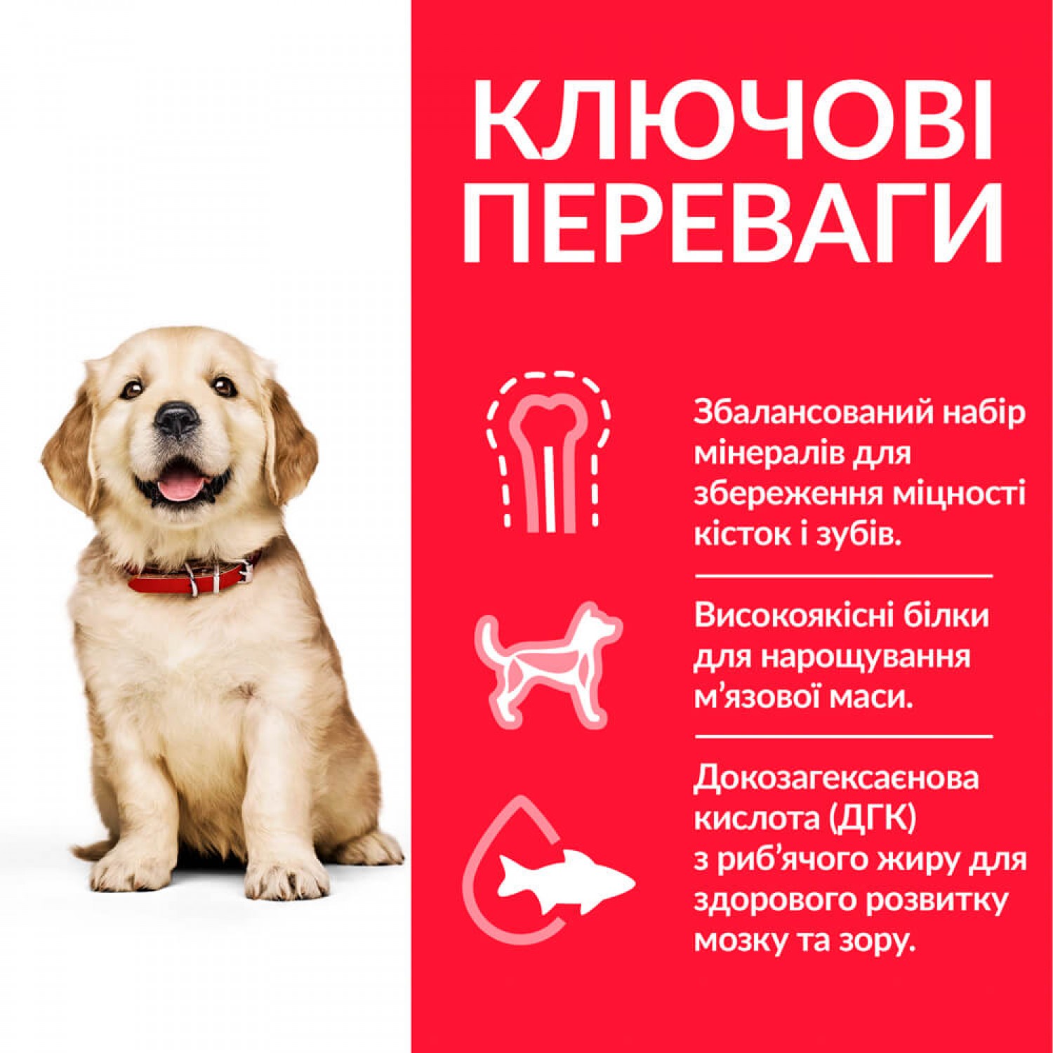 Високоякісний білок допомагає нарощувати й підтримувати на належному рівні м’язову масу вашого великого цуценяти.