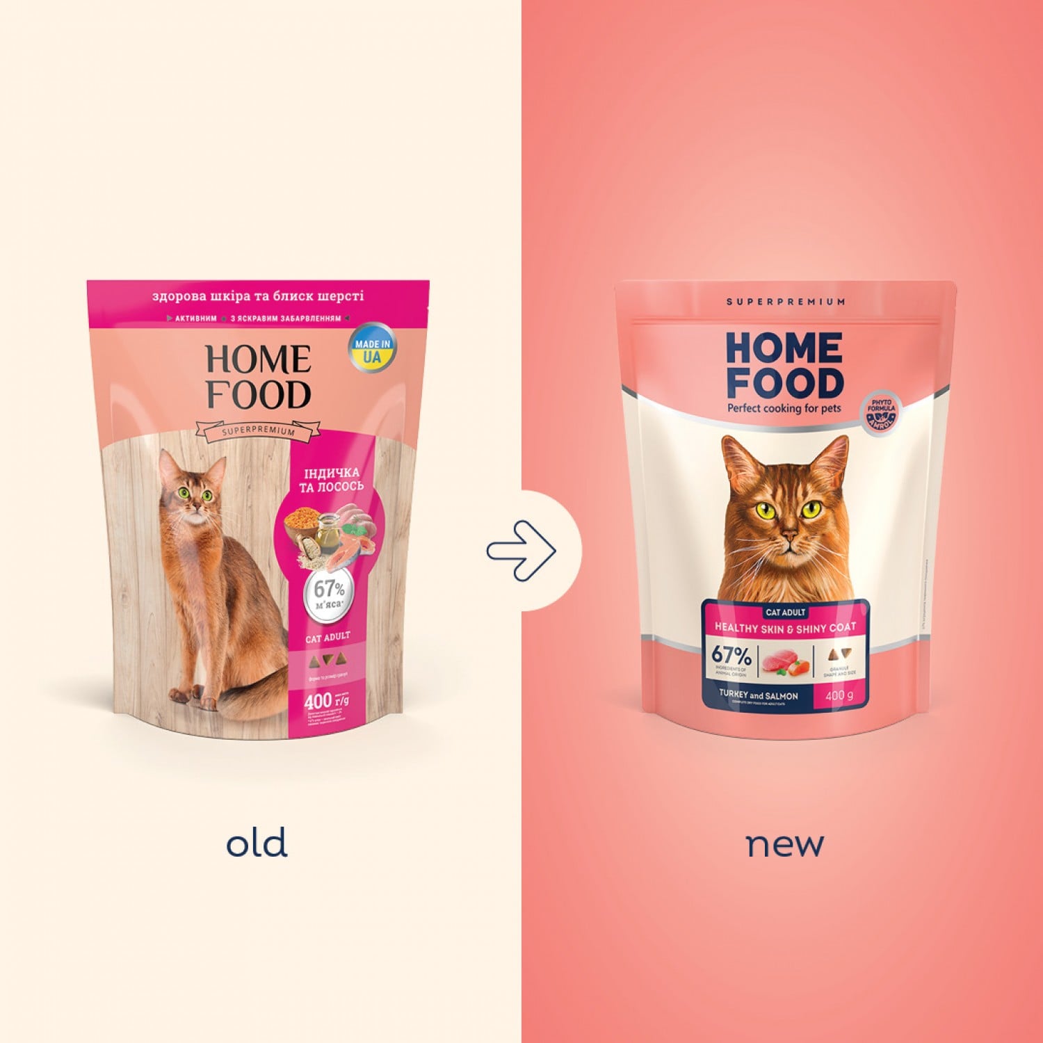 Home Food Cat Adult сухий корм для шкіри та шерсті котів "Індичка та лосось" 0,4 кг