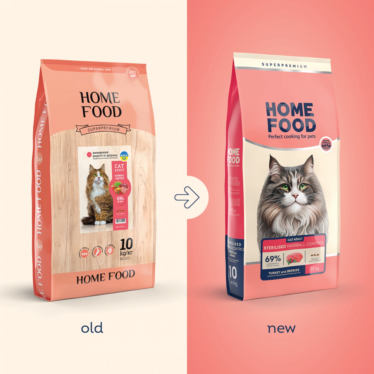 Home Food Cat Adult Hairball Control cухий корм для виведення шерсті у стерилізованих/кастрованих​ котів "Індичка та ягоди".