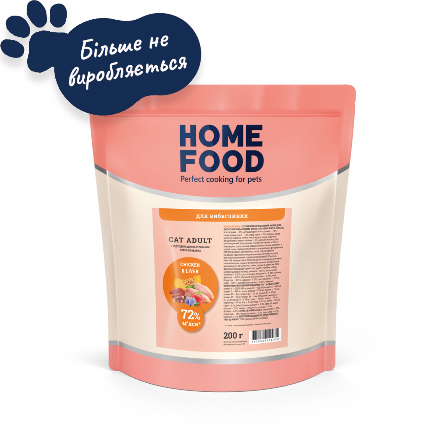 Home Food Cat Adult сухий корм для вибагливих стерилізованих котів "Chicken & Liver".