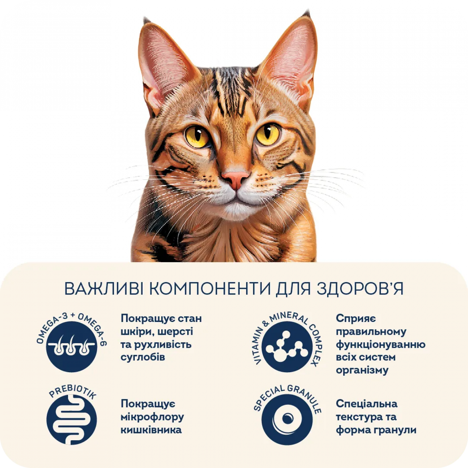 Корм підходить для котів усіх порід. Чудовий вибір для пухнастиків з високою активністю.