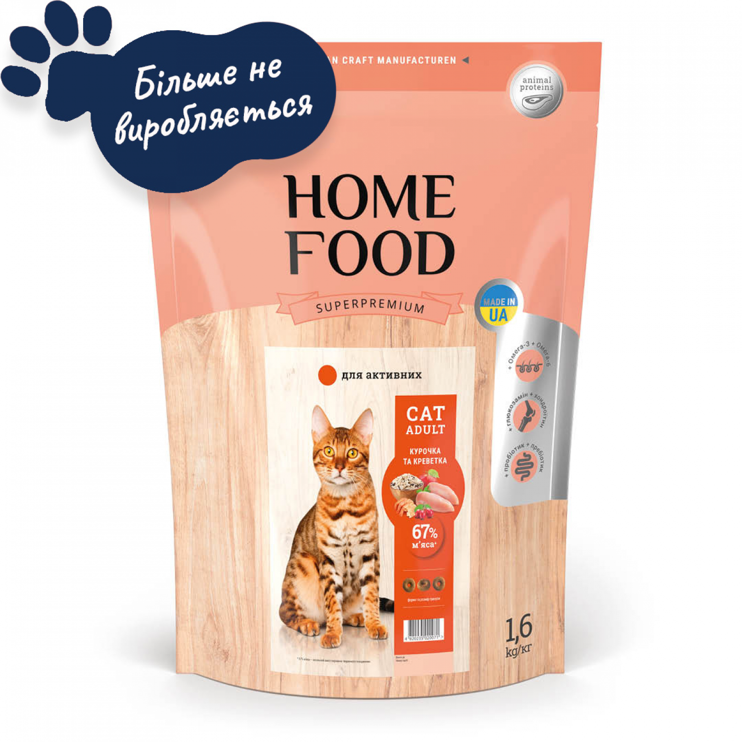 Home Food Cat Adult сухий корм для активних котів "Курочка та креветка".