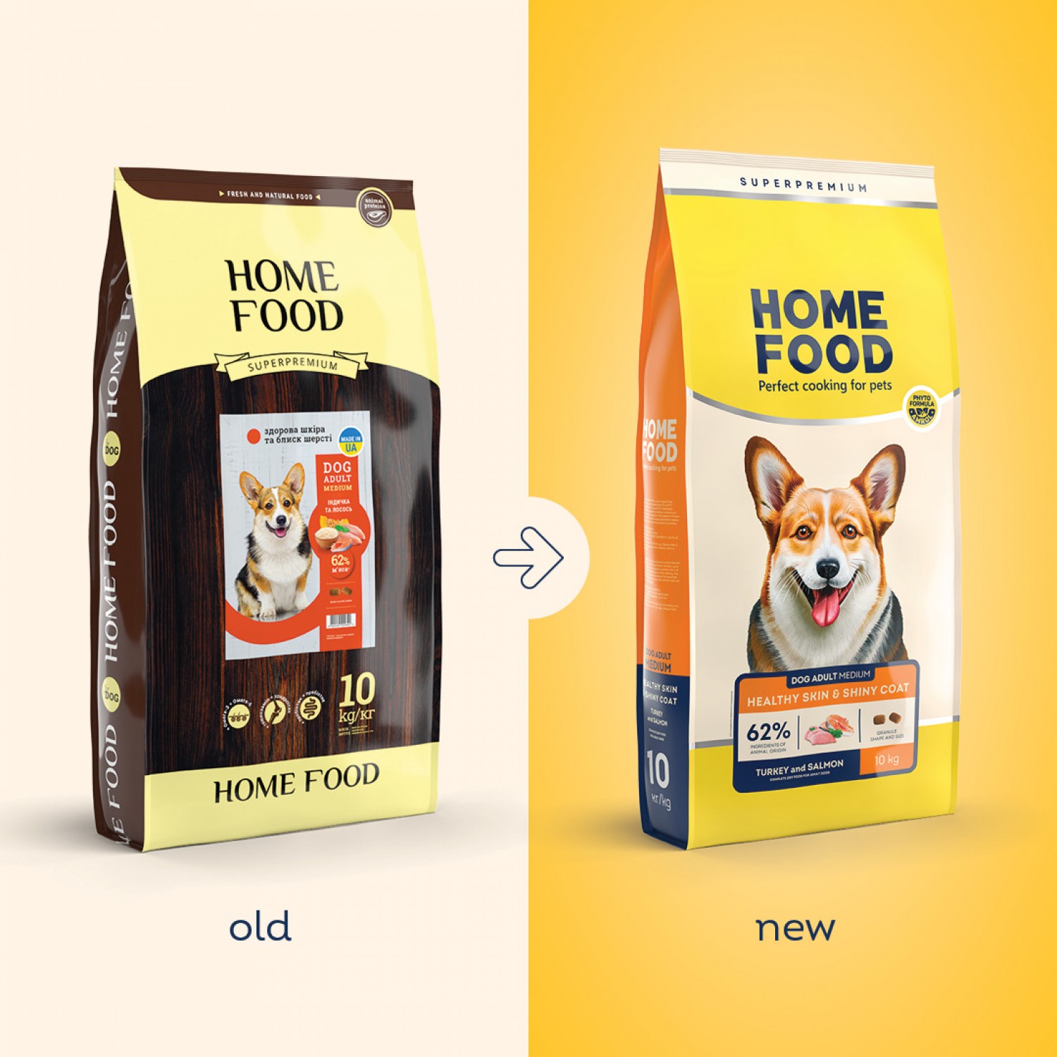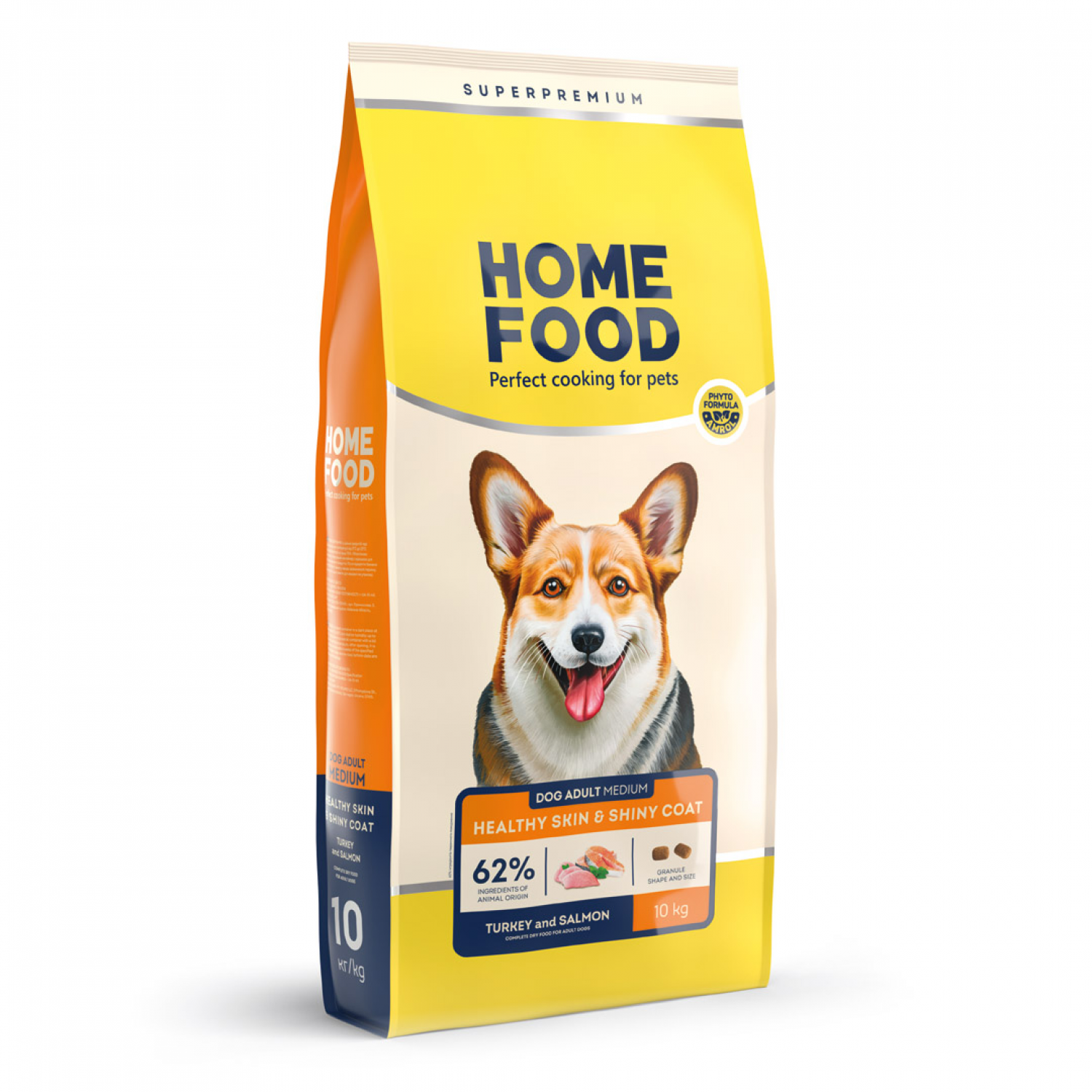 Home Food Dog Adult Medium сухий корм для шкіри та шерсті собак середніх порід "Індичка та лосось".