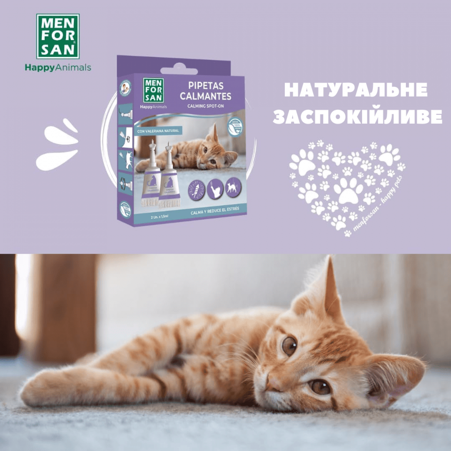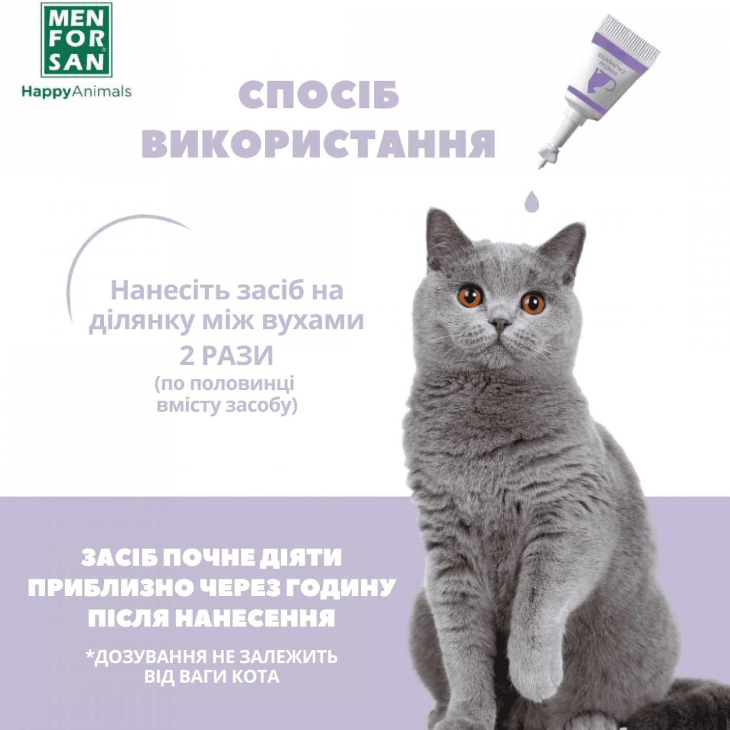 Краплі допоможуть почуватися тварині спокійніше під час стресових моментів: візитів до ветеринара, гучних звуків, поїздок на автомобілі, авіаперелітів, появи нових членів сім'ї та інших подразників.
