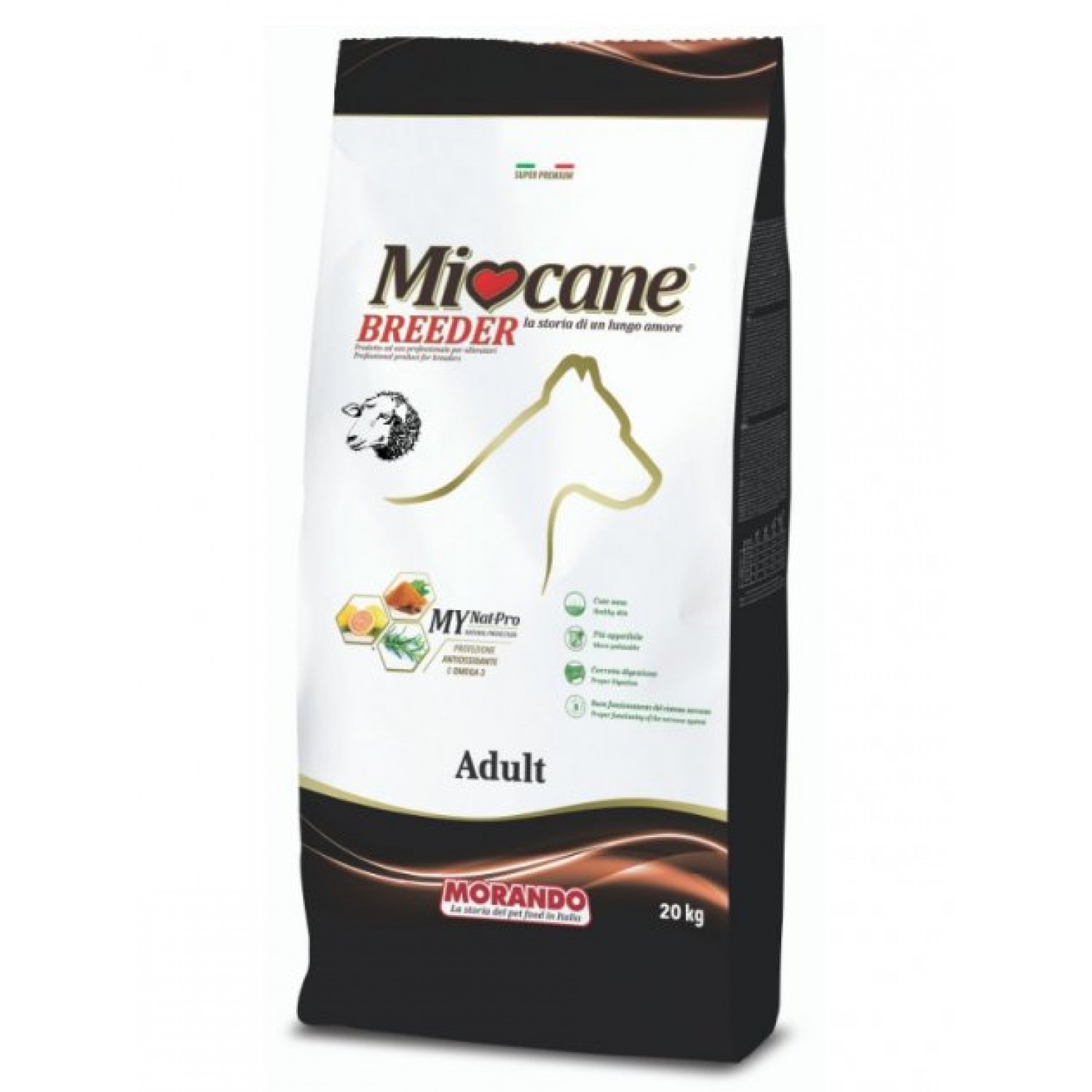 Сухий корм для собак Morando Mioсane виготовлений з інгредієнтів найвищої якості і забезпечує вихованця всіма необхідними поживними речовинами і мінералами для нормального функціонування організму.