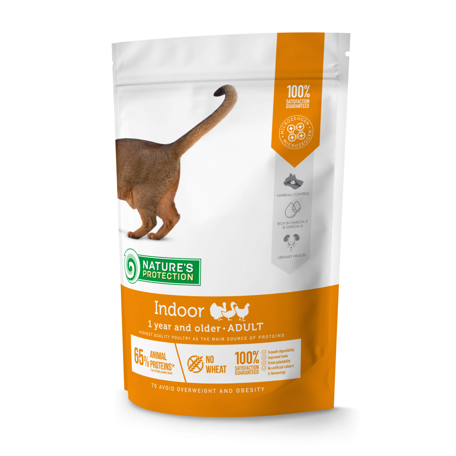 Nature's Protection Indoor Adult – сухий повнораційний корм для дорослих домашніх котів. Підтримує життєву енергію, сприяє здоровому та тривалому життю вихованця. Знижена кількість жирів та L-карнітин допомагають врегулювати та підтримати кращу вагу тіла кішки.