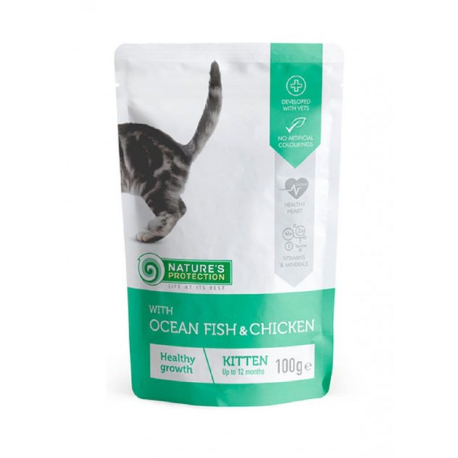 Nature's Protection Kitten with Ocean fish and Chicken вологий корм для кошенят з океанічною рибою і куркою в соусі.