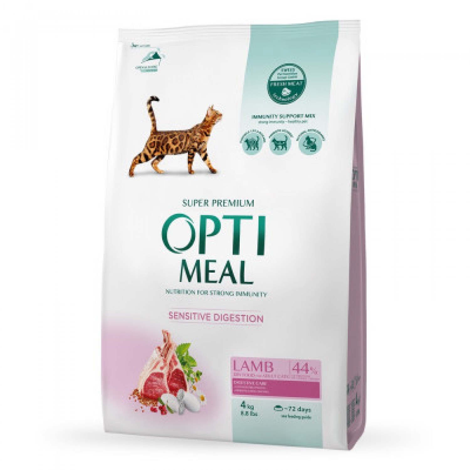 Optimeal Adult Cat Lamb Sensitive сухий корм для котів з чутливим травленням з ягням.