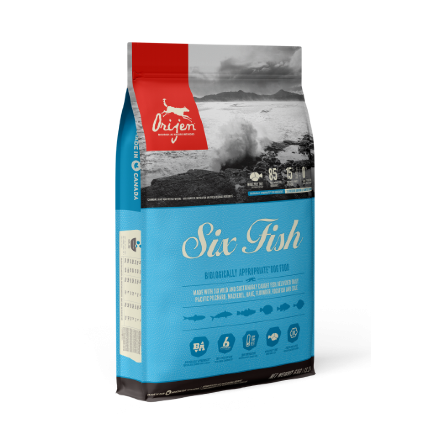 Переповнений високопоживними протеїнами (38%), з меншою кількістю вуглеводів (18%), ORIJEN SIX FISH забезпечує природне харчування собак на всіх стадіях життя, у відповідності до їх еволюційних та біологічних потреб.