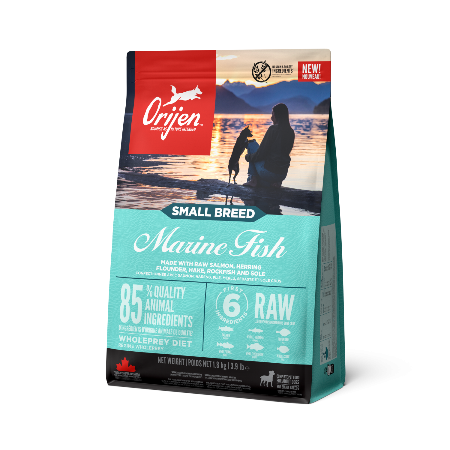 - Orijen Small Breed Marine Fish створений спеціально для собак, які надають перевагу смаку риби, або мають харчову чутливість до м'яса птиці.