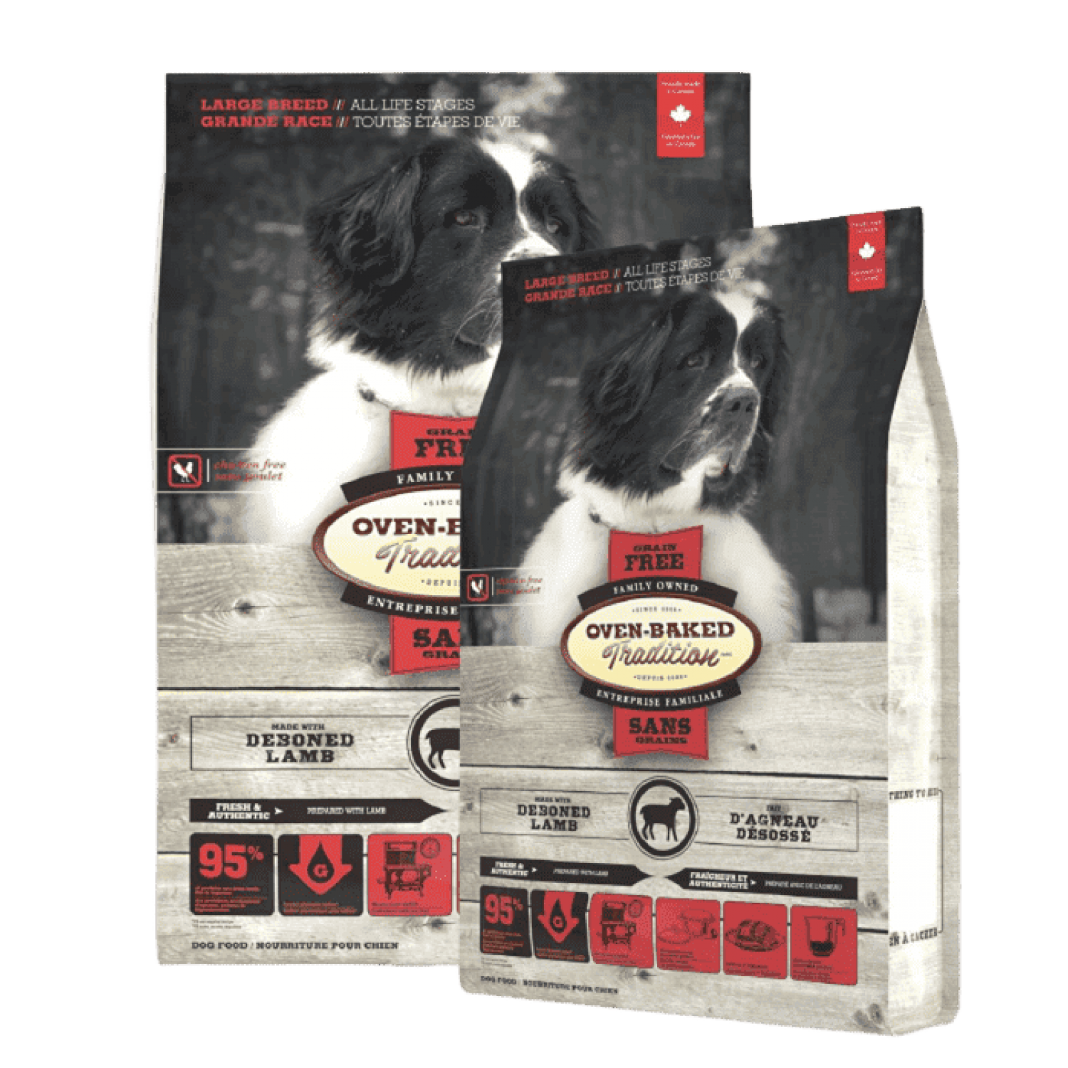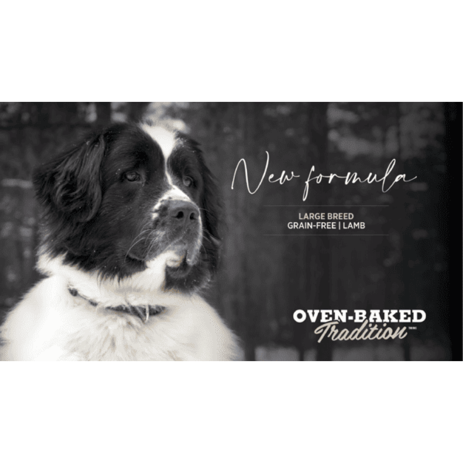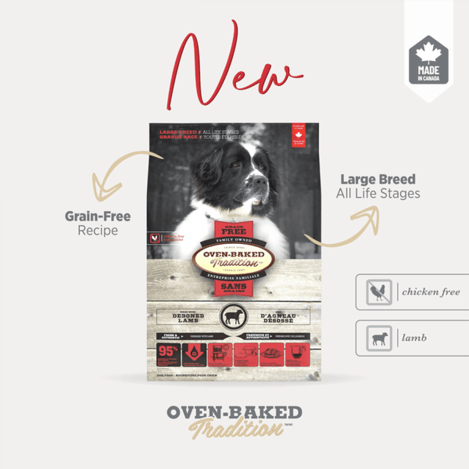 Oven-Baked Tradition повністю збалансований беззерновий сухий корм для собак великих порід усіх етапів життя зі свіжого м’яса ягня.