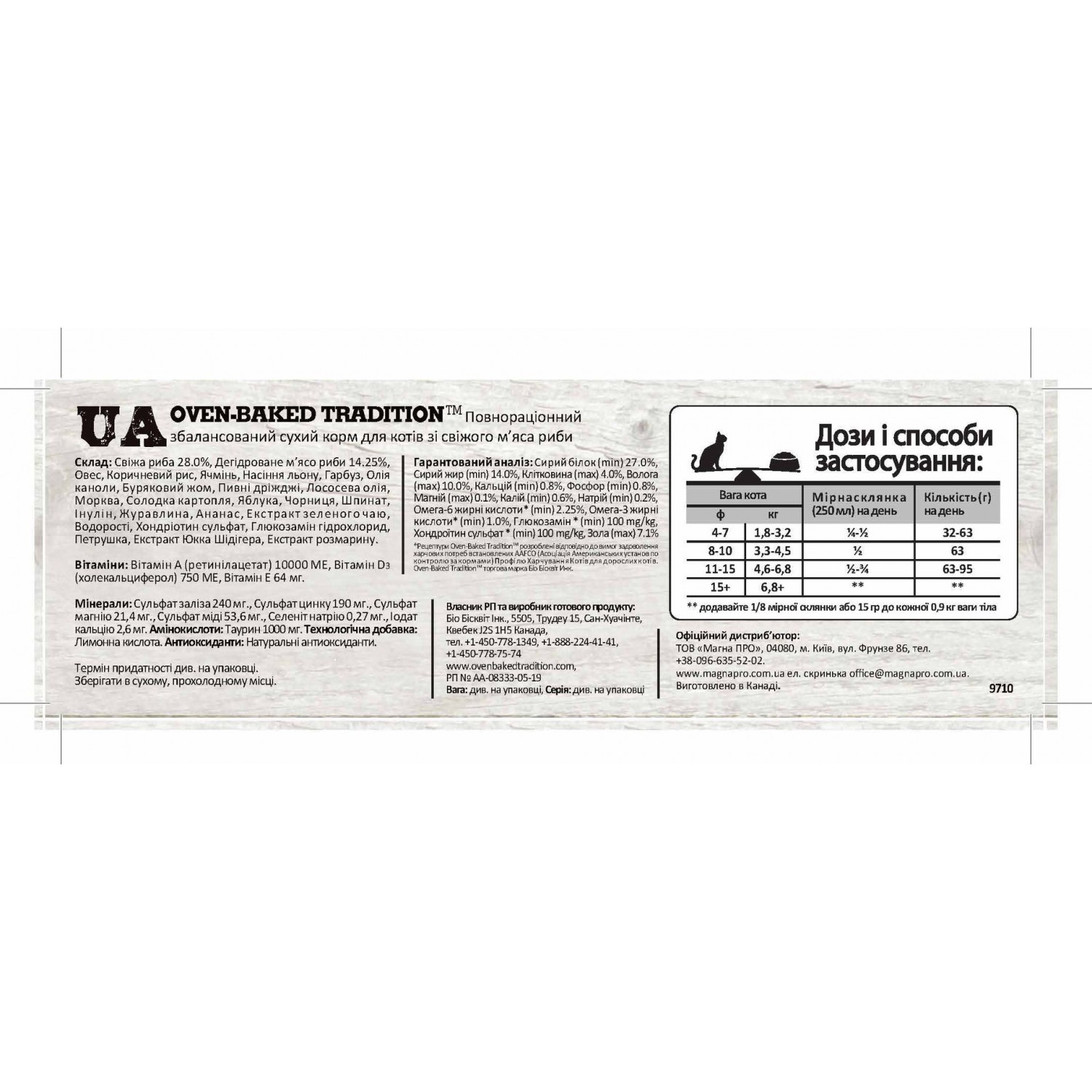 Oven-Baked Tradition повністю збалансований сухий корм для котів зі свіжого м’яса риби.