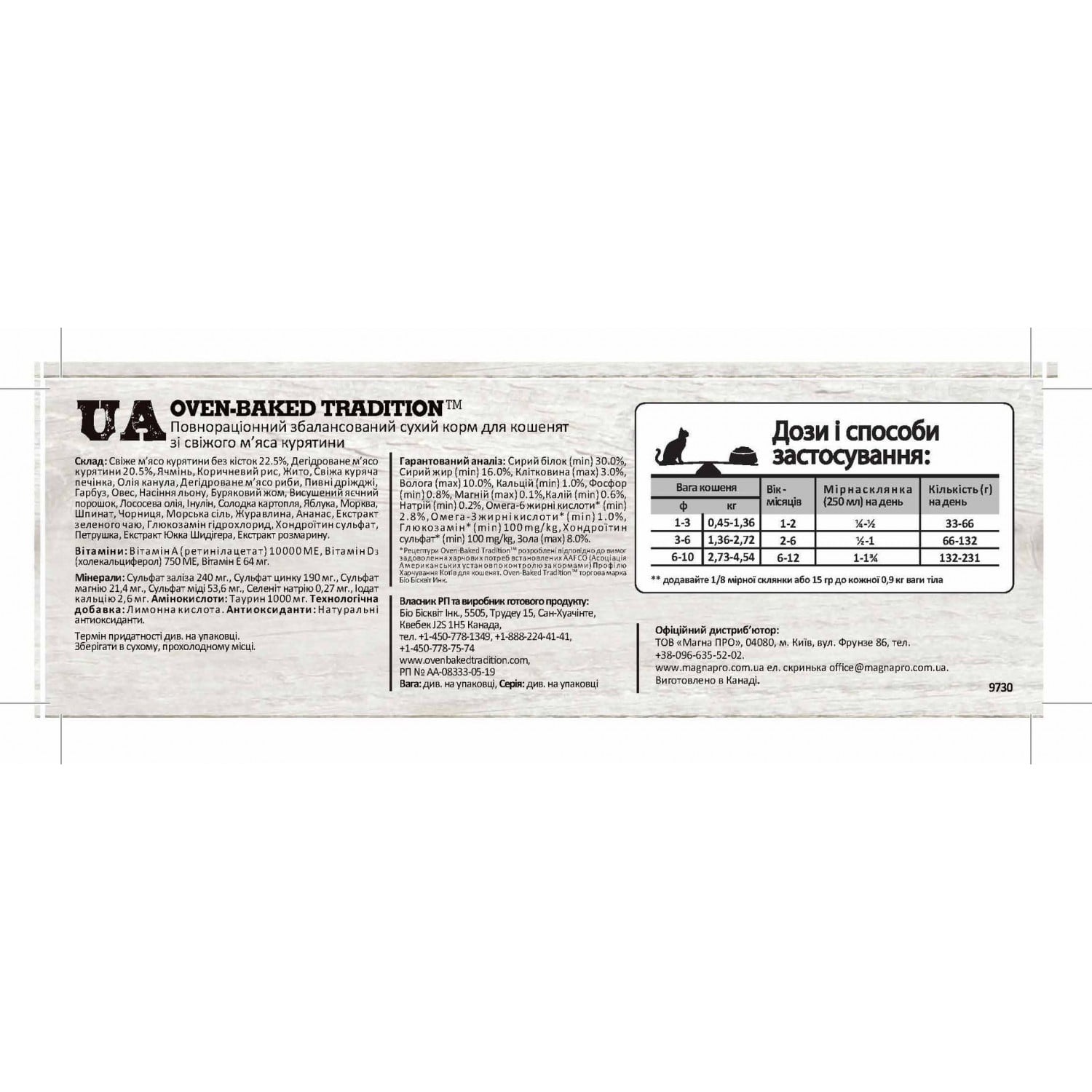 Oven-Baked Tradition повністю збалансований сухий корм для кошенят зі свіжого м’яса курятини.