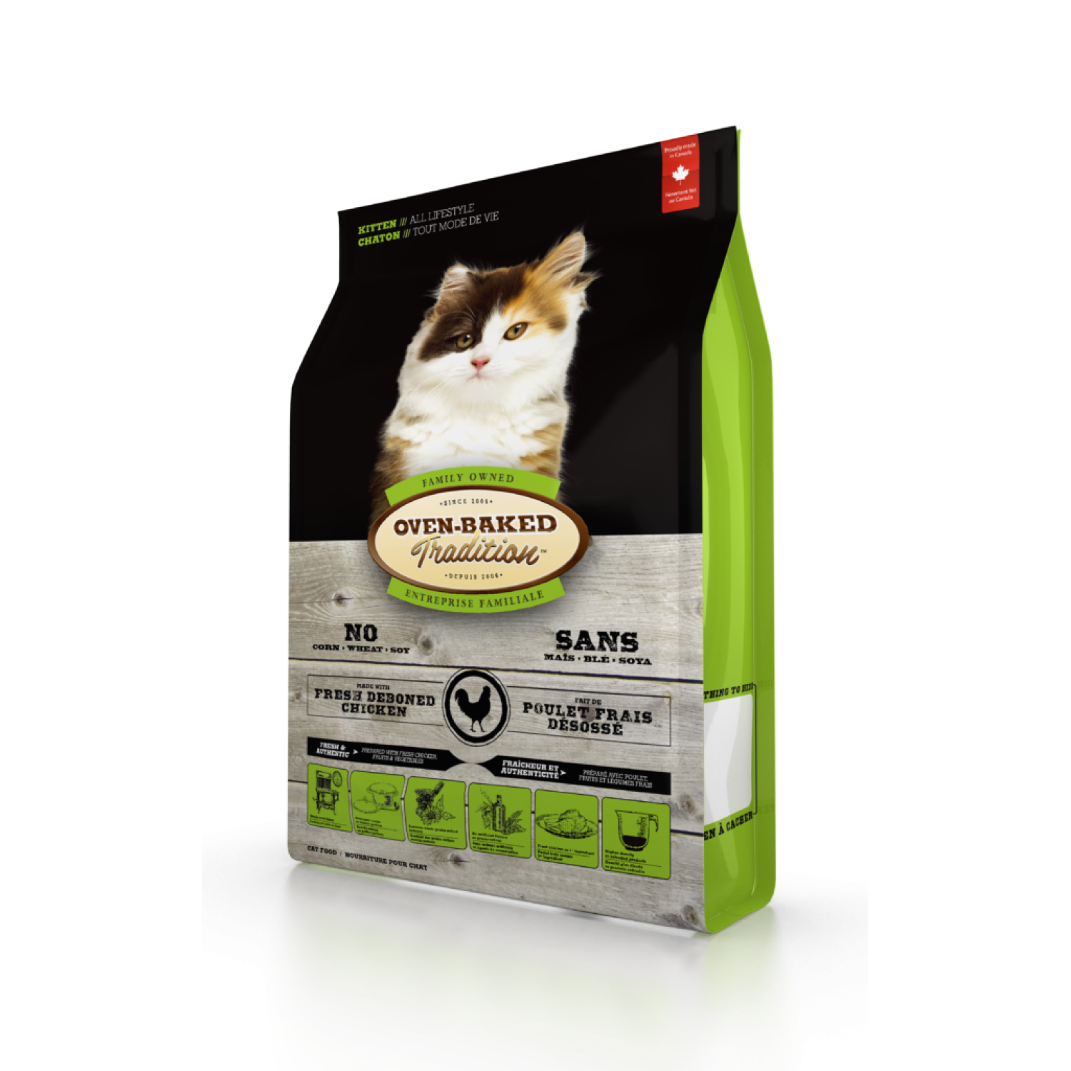Oven-Baked Tradition повністю збалансований сухий корм для кошенят зі свіжого м’яса курятини.