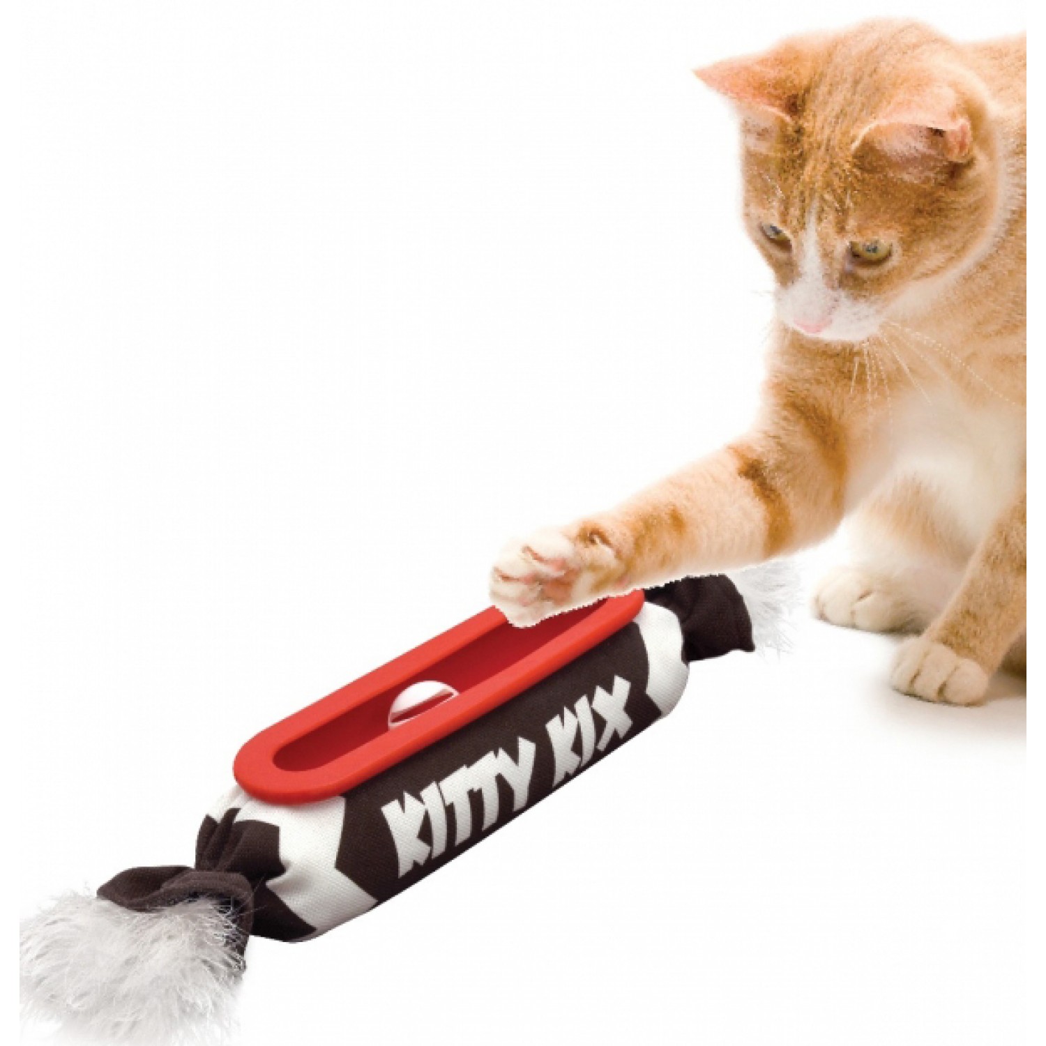 Зручна форма та великий розмір іграшки відмінно підходять для захоплення лапами та боротьби лежачи на боці, а піддатливий м'який матеріал — для укусів і дряпання кігтями.
