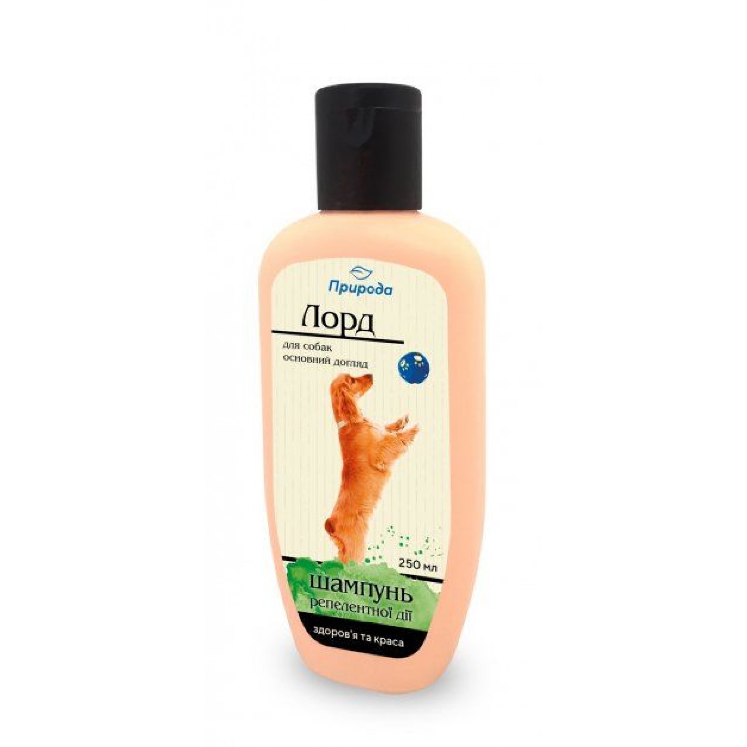 Гігієнічний шампунь для основного догляду собак «Лорд» має репелентну дію проти бліх, кліщів та інших ектопаразитів. Репелентний ефект досягається завдяки унікальному поєднанню лікарських трав. Шампунь знімає подразнення, пом’якшує та тонізує шкіру, сприяє загоюванню розчосів.