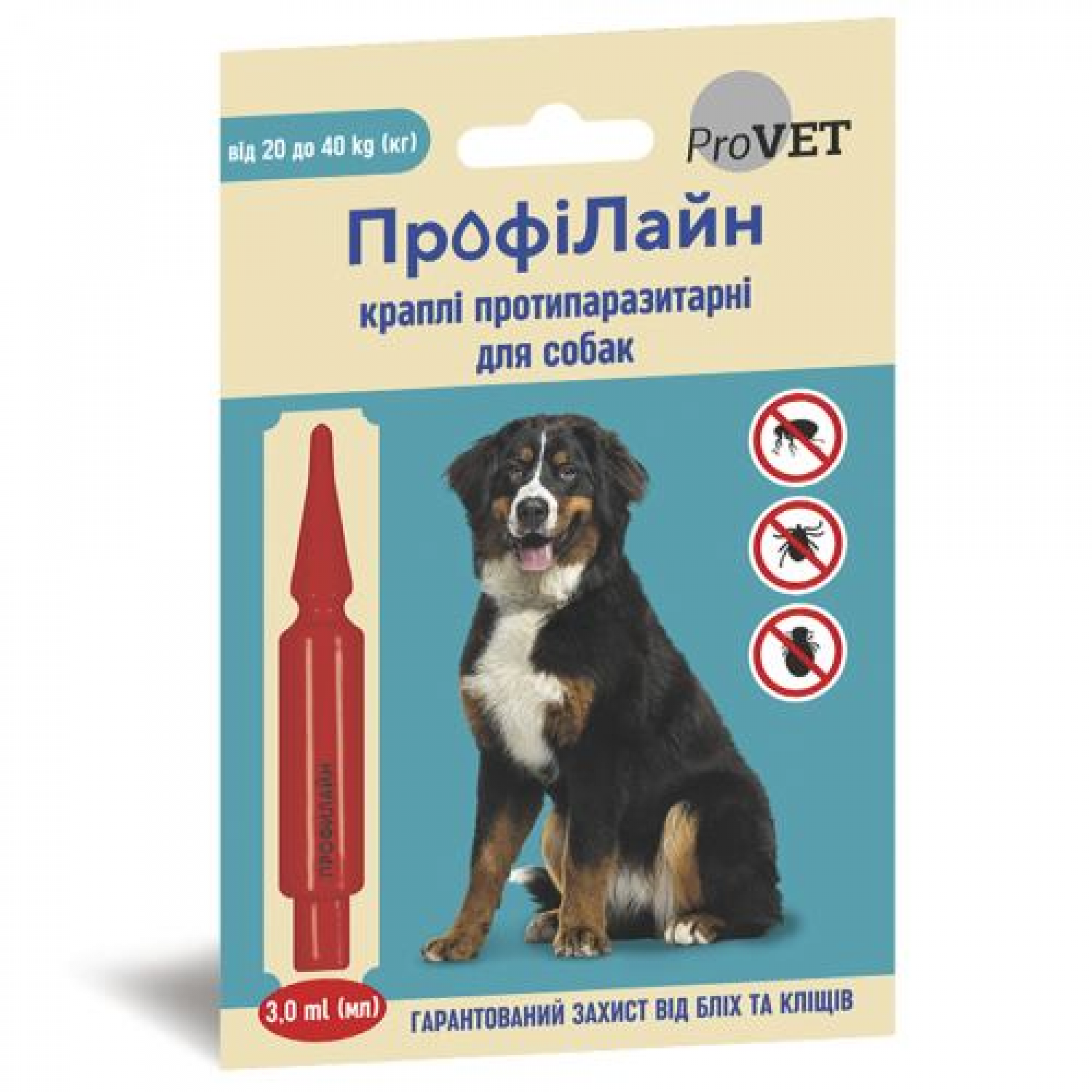 ProVet ПрофіЛайн протипаразитарні краплі для собак від 20 до 40кг від бліх та кліщів (1 піпетка 3,0мл)