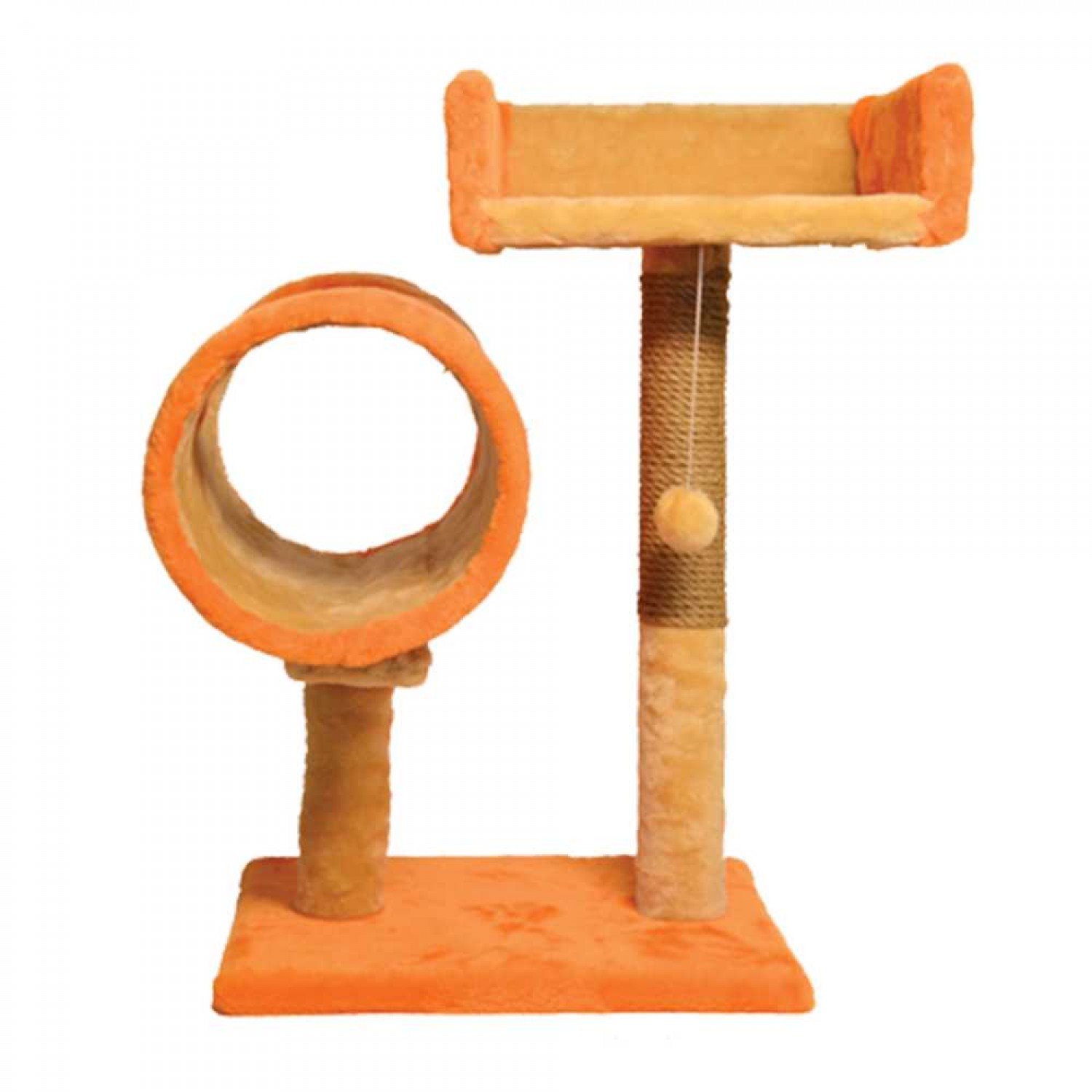 Пухнастики кігтеточка для котів з диваном і тунелем (джут) руда.