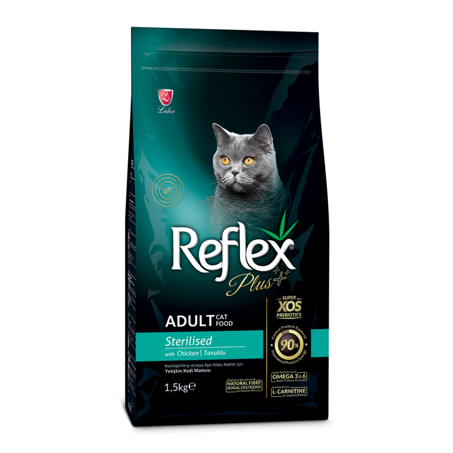 Reflex Plus Sterilized - це повноцінний корм супер-преміум класу з куркою для дорослих котів усіх порід віком від 12 місяців. Формула збагачена вітамінами, мінералами, пребіотиками та антиоксидантами, які підтримують імунітет, здорове травлення та забезпечують блискучу, доглянуту шерсть.