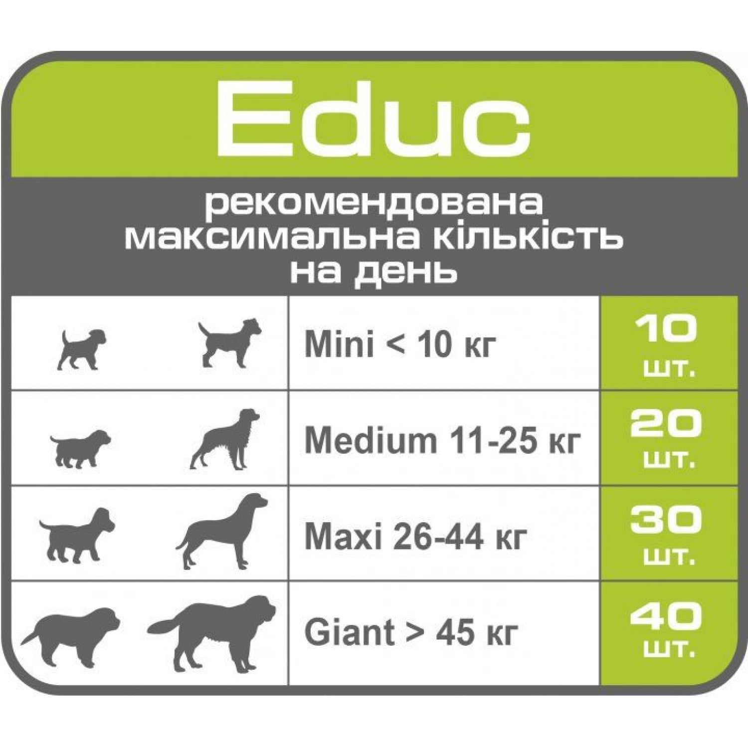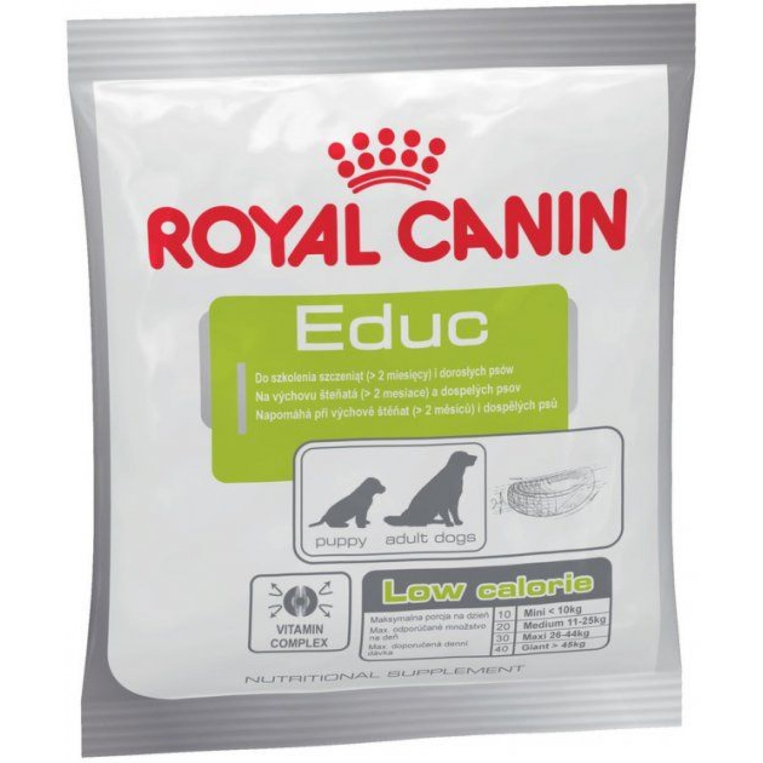Royal Canin Educ Canine - ласощі для собак і цуценят для заохочення під час дресування рекомендується як додаткове живлення (лакомство) для заохочення під час навчання та дресування цуценят віком від 2 місяців і дорослих собак.