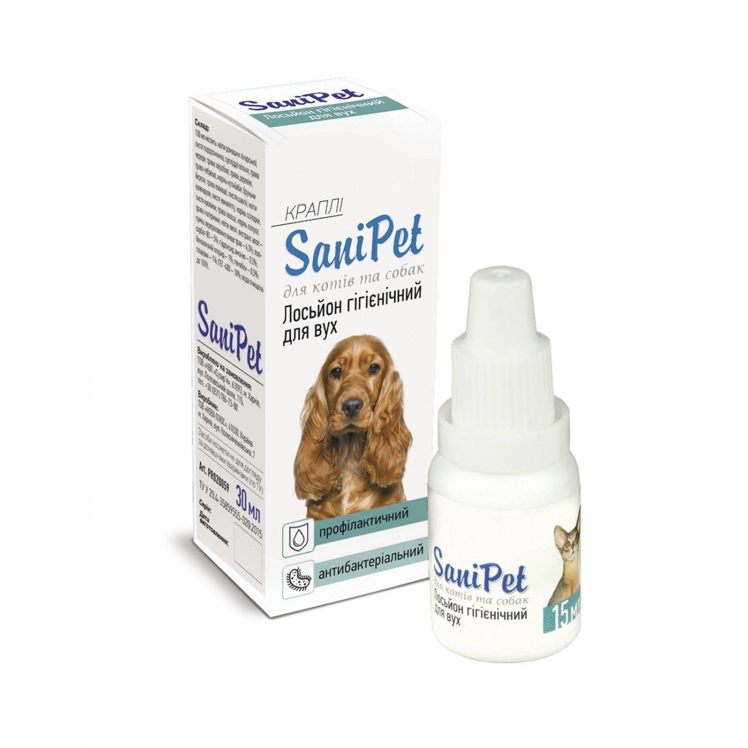 SaniPet лосьйон капли для ухода за ушами у собак и котов.