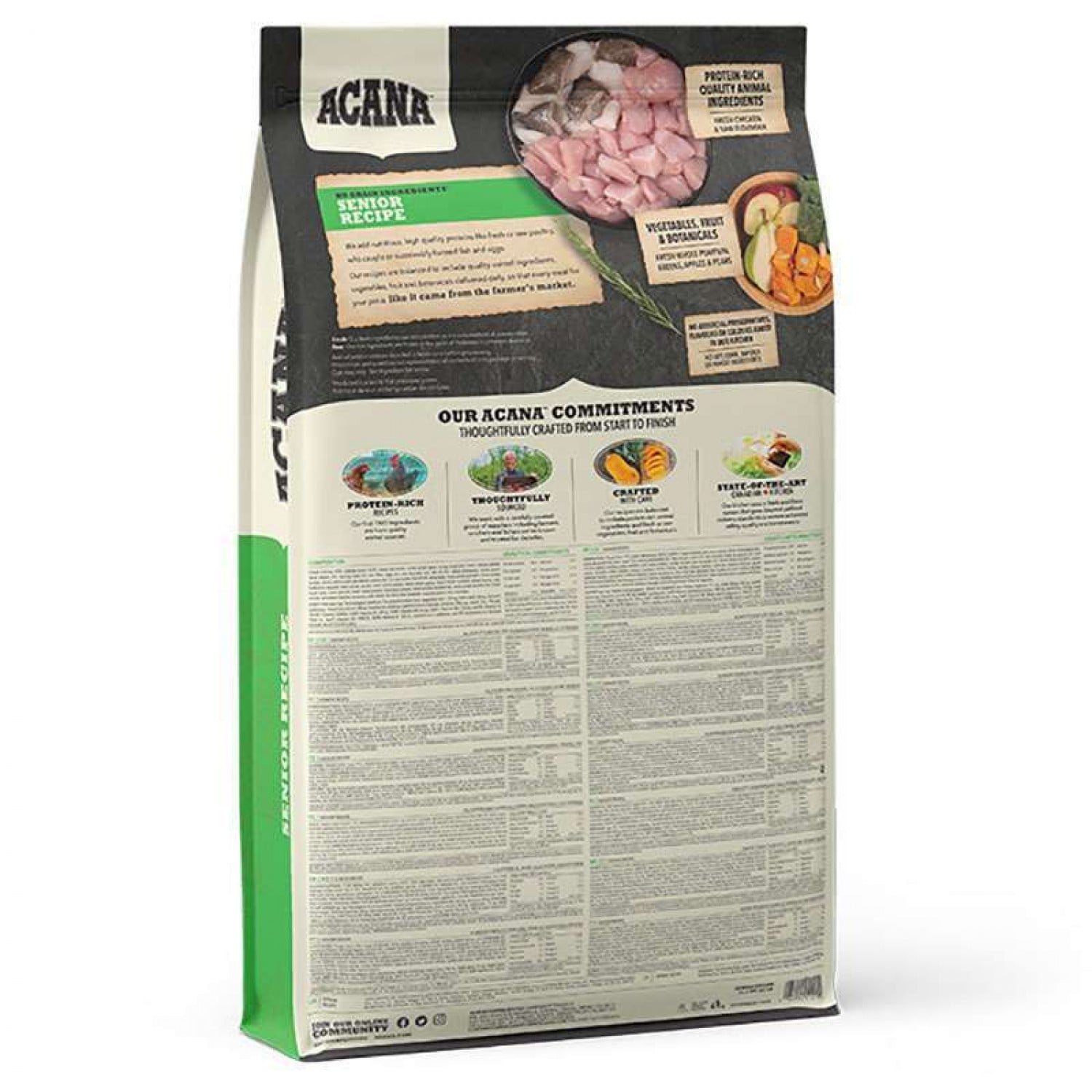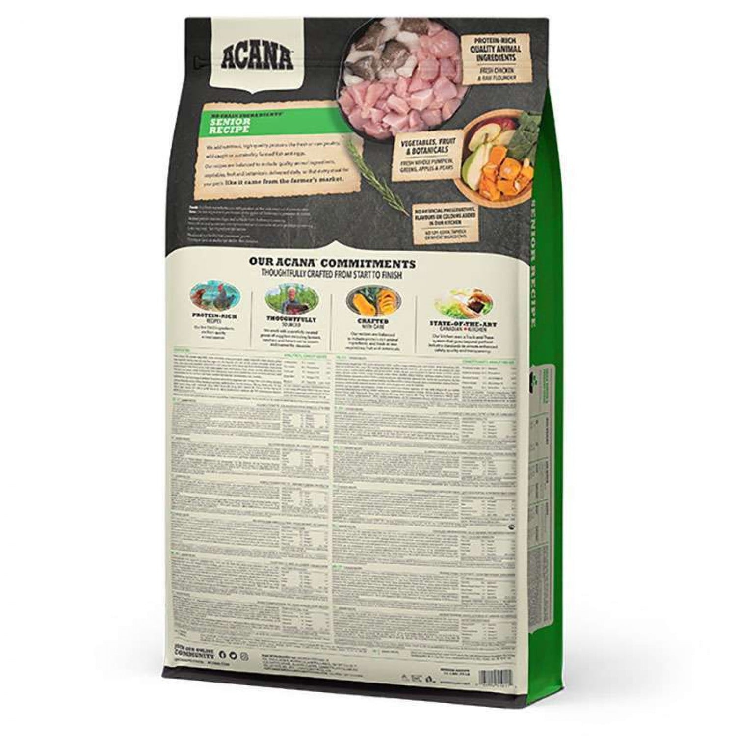 Когда это касается корма ACANA, каждый ингредиент имеет значение. Именно поэтому, рецептура Senior Recipe создается с заботой, чтобы обеспечивать здоровье стареющих собак. Рецептура АКАНА Сеньор Ресипе на 65% переполнена качественными мясными ингредиентами, такими как мясо канадских цыплят и сырой камбалы и на 35% сбалансирована фруктами, овощами и травами.