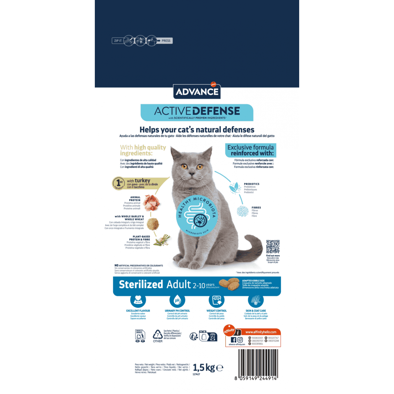 Advance Cat Sterilized - это полнорационный сбалансированный корм, специально разработанный для стерилизованных кошек. Его формула учитывает измененные потребности животных после стерилизации, помогая поддерживать здоровый вес, надлежащий обмен веществ и общее состояние здоровья. Он не только помогает контролировать вес, но и способствует поддержанию здоровья мочевой системы, повышает общее самочувствие и обеспечивает комфортную жизнь стерилизованному коту.