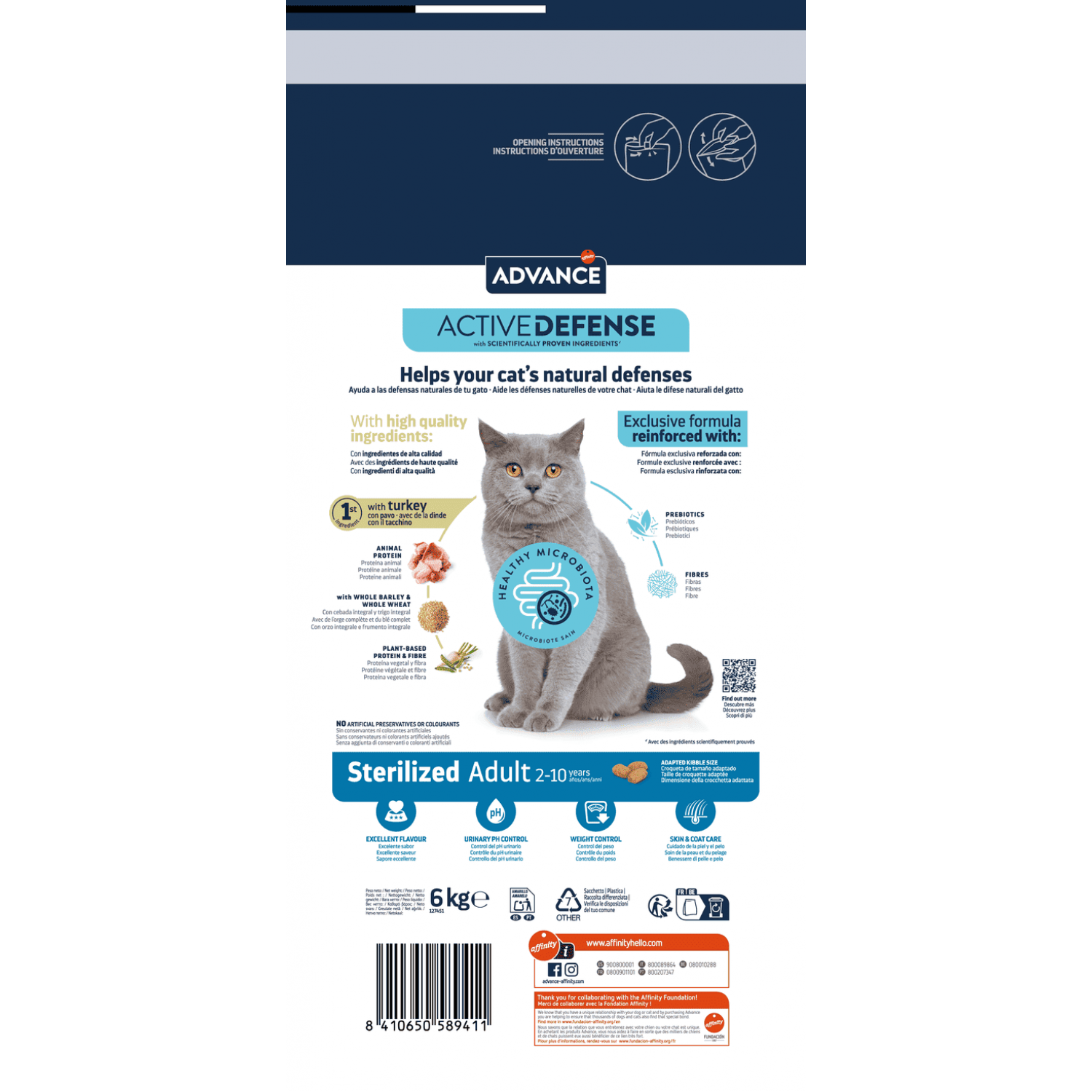 Advance Cat Sterilized сухой корм для стерилизованных кошек с индейкой.