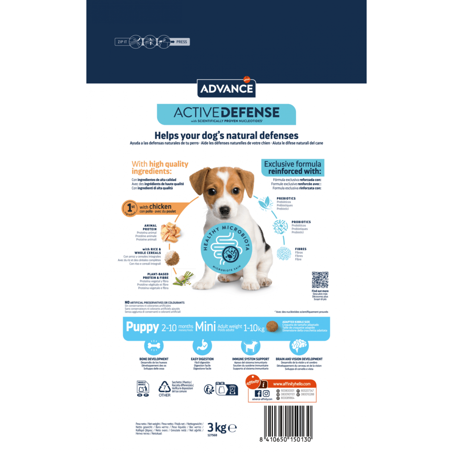 Advance Dog Mini Puppy - это высококачественный, полноценный и сбалансированный корм, специально созданный для щенков малых пород в возрасте от 2 до 10 месяцев (с ожидаемым весом взрослой собаки до 10 кг), а также для беременных и кормящих собак. Формула корма разработана с учетом особых потребностей в период интенсивного роста и развития, обеспечивая организм необходимым количеством белков, жиров, витаминов и минералов. Благодаря содержанию DHA корм поддерживает развитие мозга и зрения, а природные пребиотики способствуют здоровому пищеварению. Advance Dog Mini Puppy - это забота о правильном старте в жизни вашего щенка и поддержка здоровья мамы-собачки.