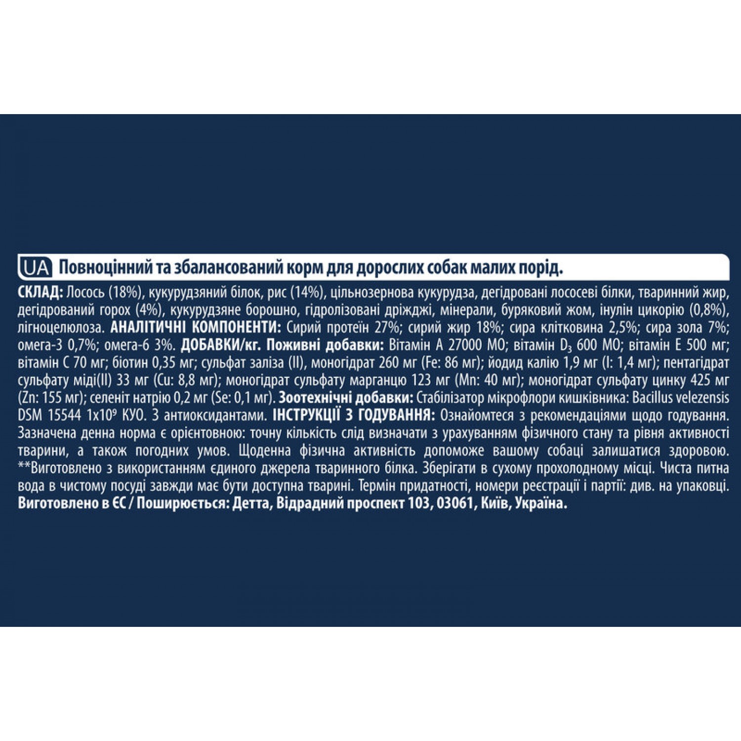 - Гранулы корма адаптированы специально для малых пород собак.