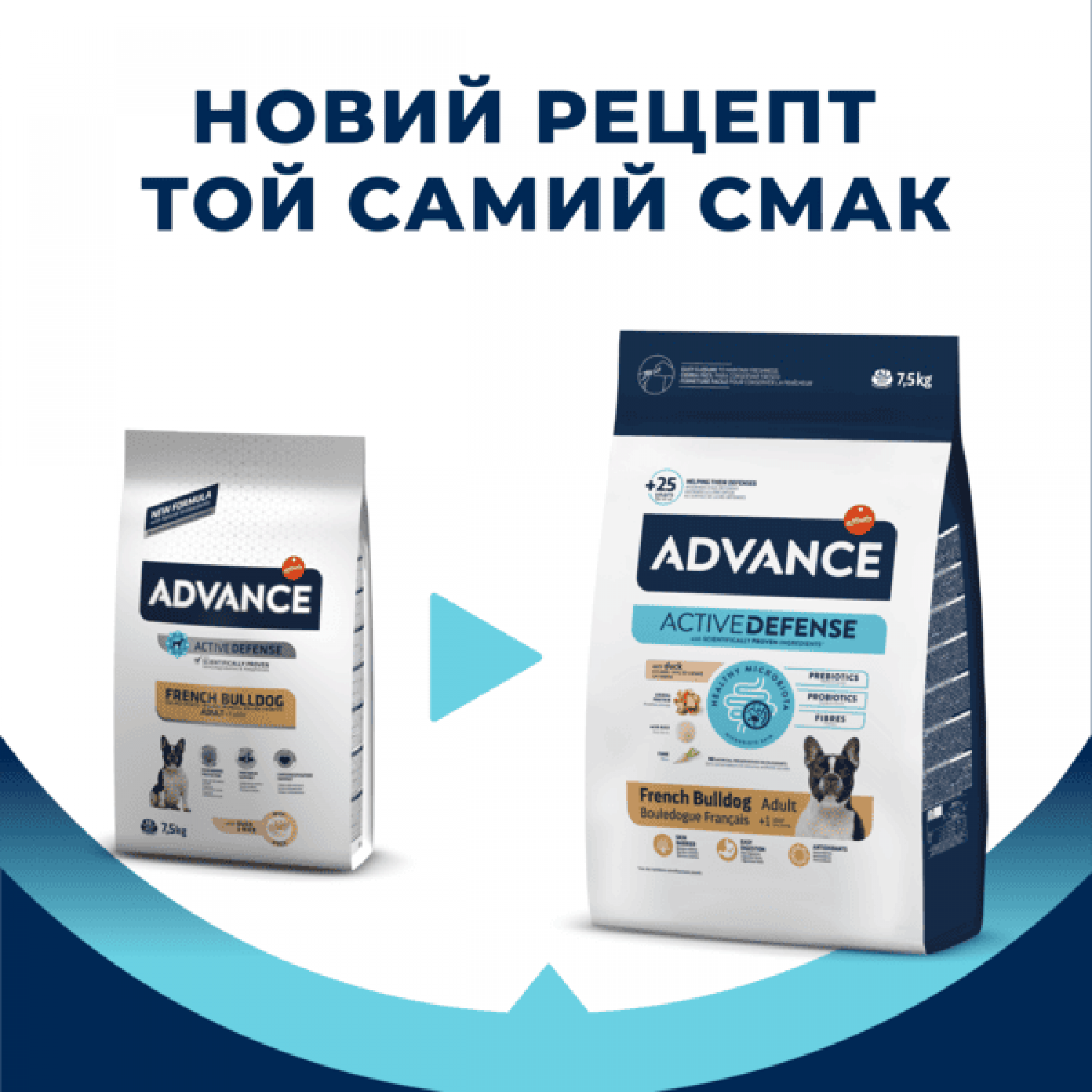 Advance Dog French Bulldog - это высококачественный, полноценный и сбалансированный корм, разработанный специально для взрослых французских бульдогов в возрасте от 12 месяцев.