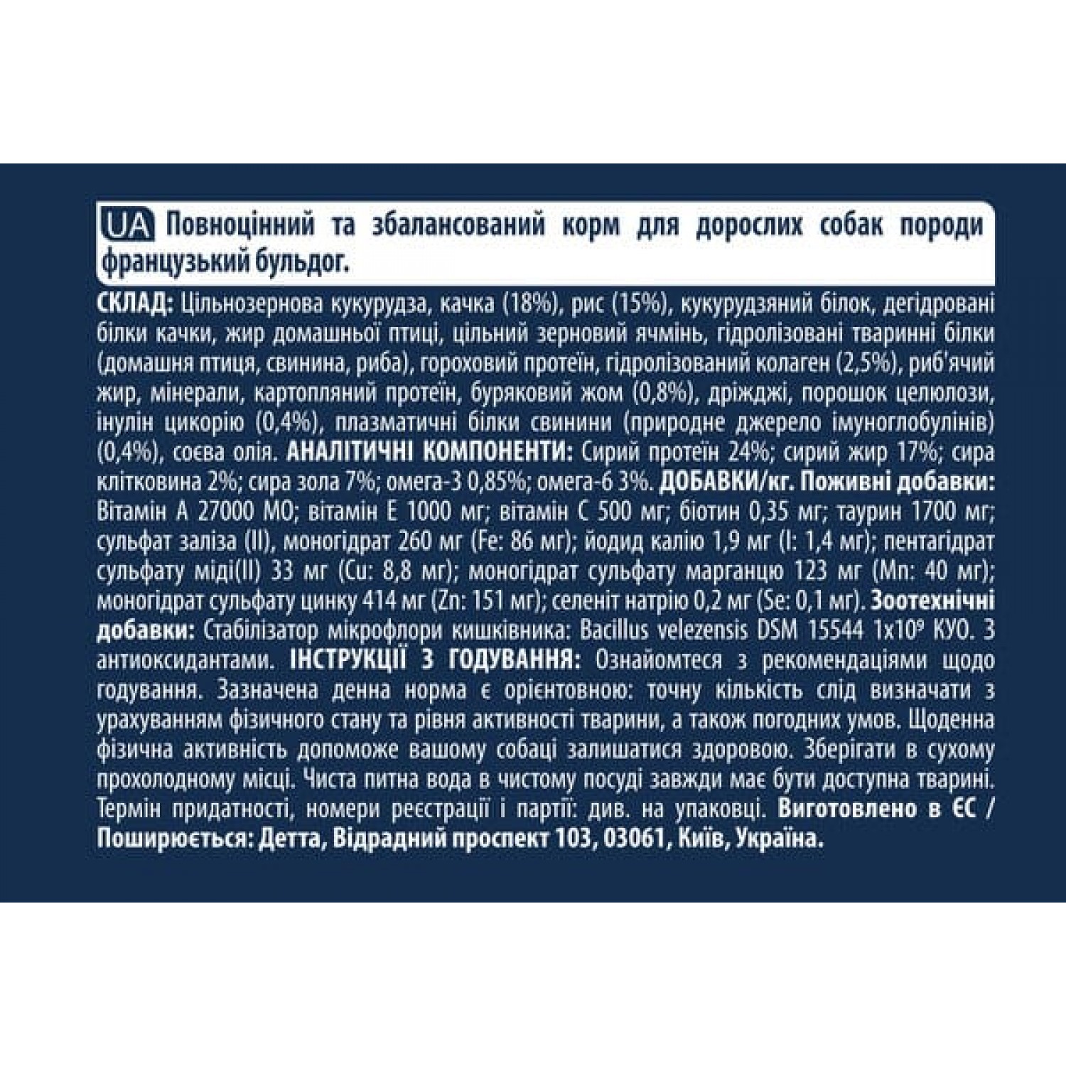 Специальная структура гранул адаптирована для собак породы французский бульдог.
