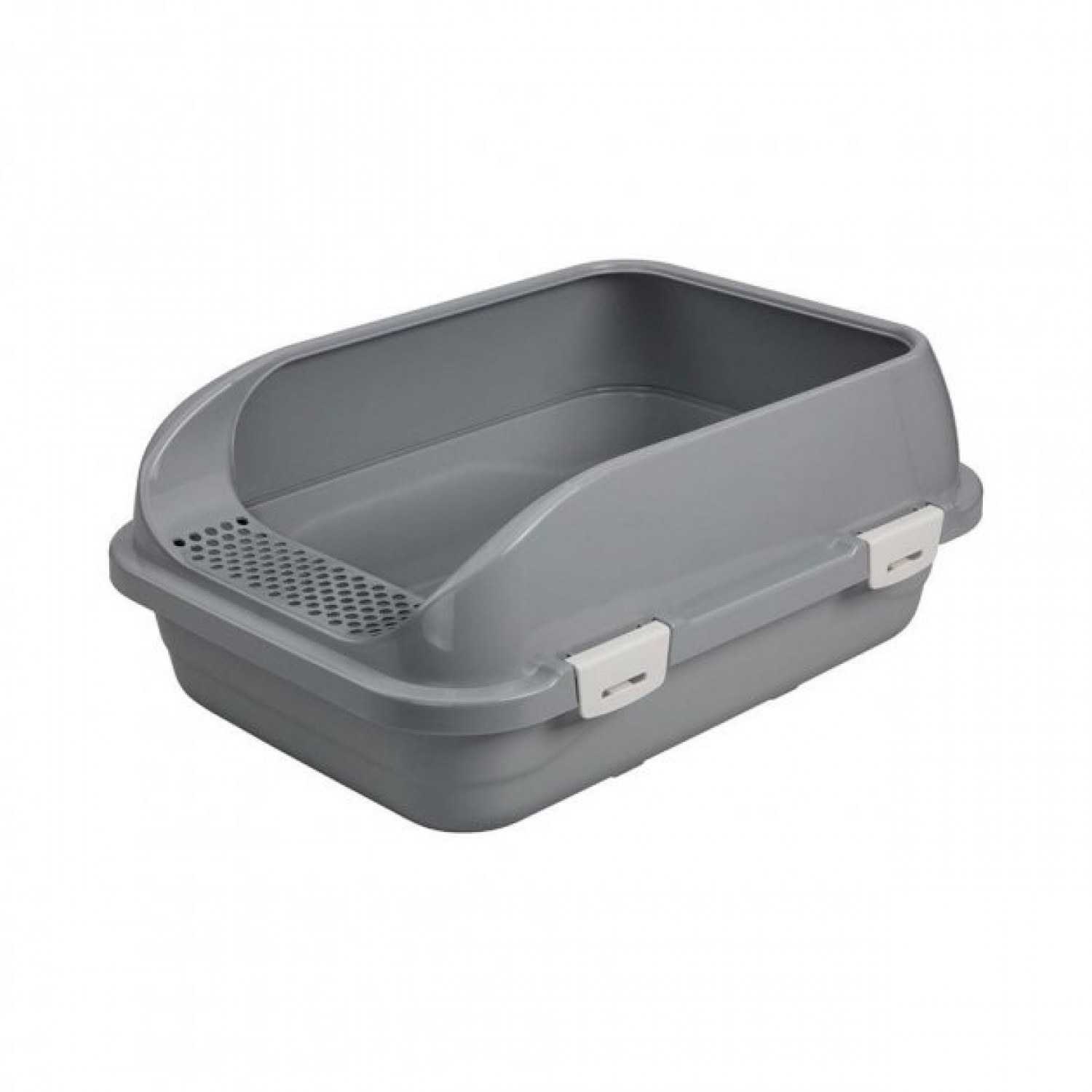 Удобный пластиковый туалет с высоким защитным бортиком. Практичная прямоугольная модель, специально оснащена дополнительной съемной рамкой, которая препятствует разбрасыванию наполнителя вокруг туалета.