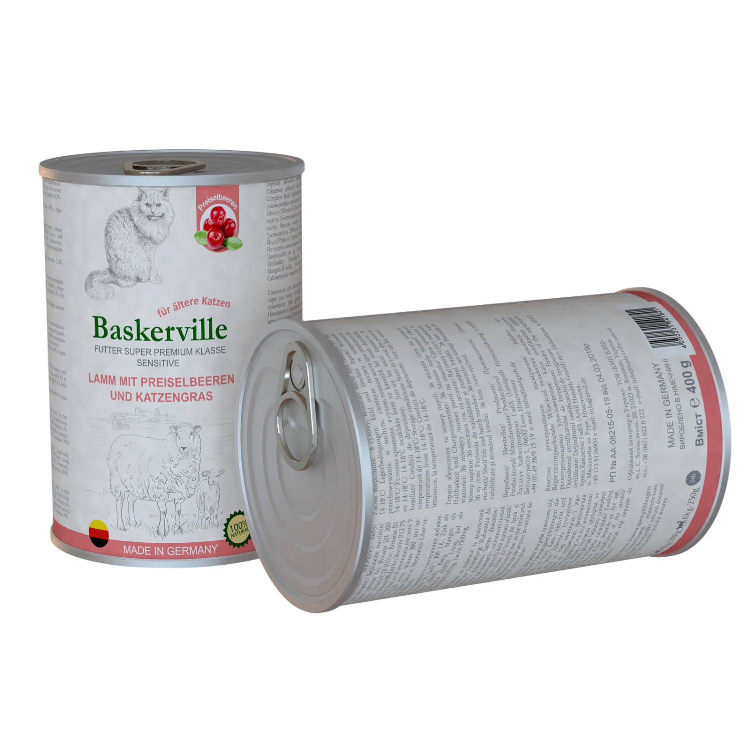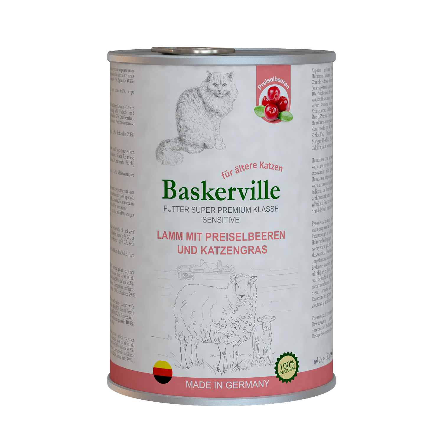 Консервированный корм для кошек Baskerville Sensitive Ягненок с клюквой и кошачьей травой