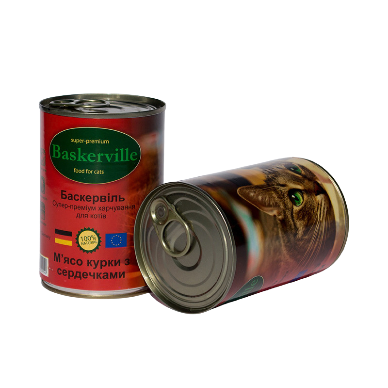 Баскервиль. Мясо курицы с сердечками. Консервированный корм супер-премиум класса для кошек.